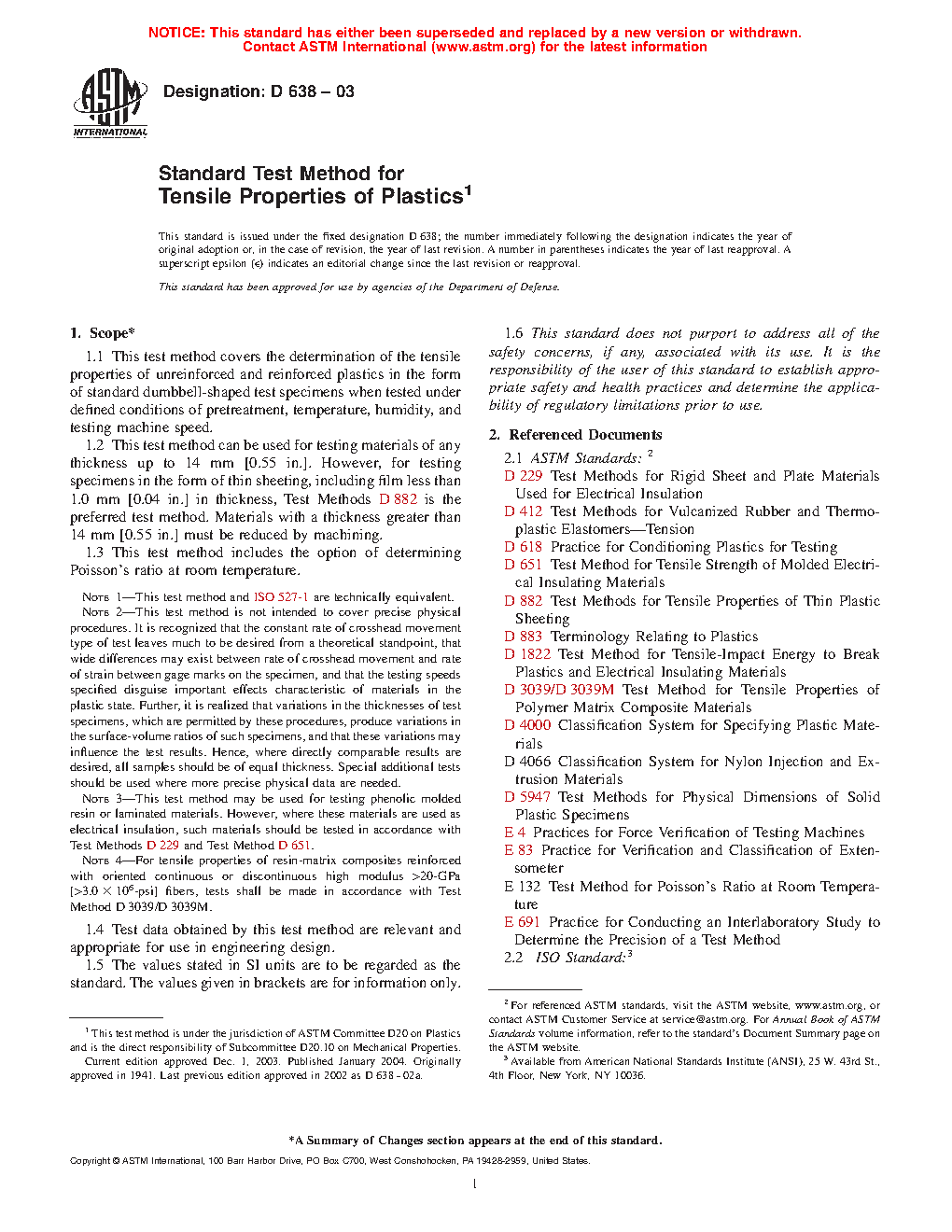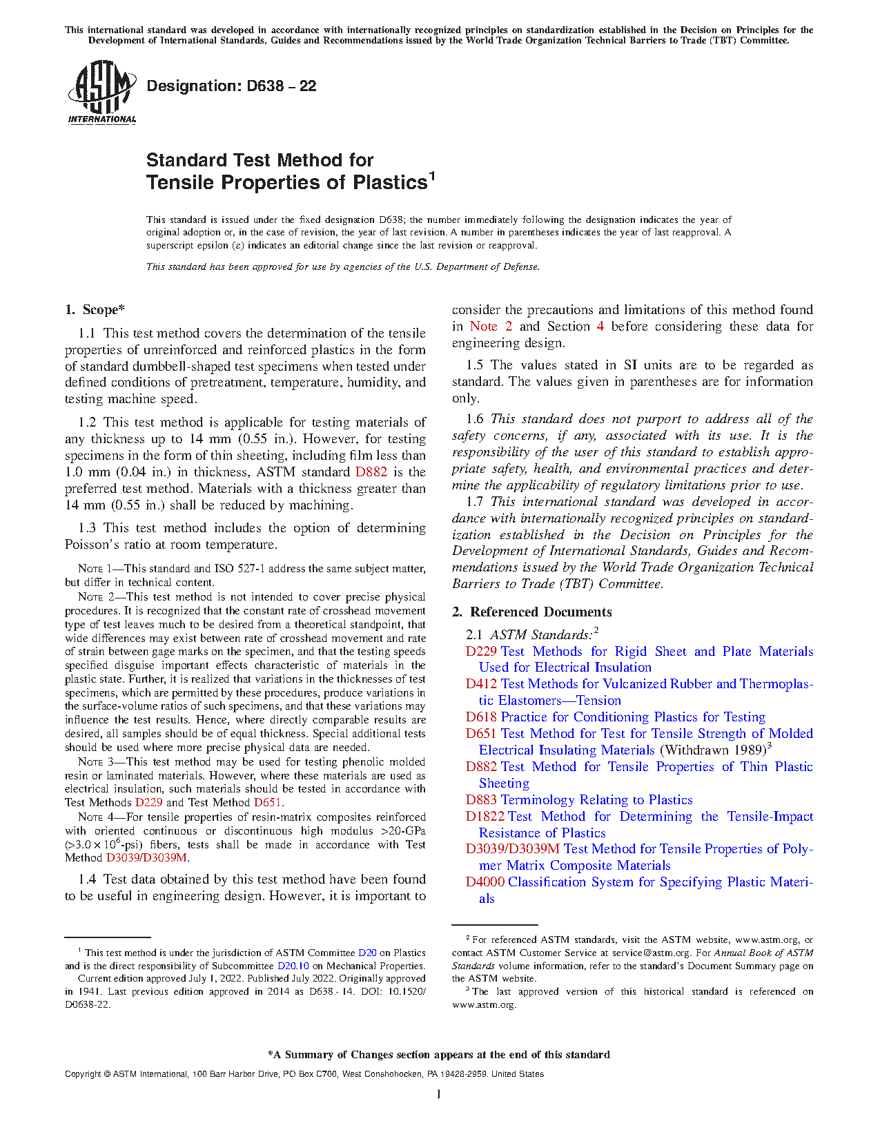 1.2 This test method is applicable for testing materials of any thickness up to 14 mm (0.55 in.). However, for testing specimens in the form of thin sheeting, including film less than 1.0 mm (0.04 in.) in thickness, ASTM standard D882 is the preferred test method. Materials with a thickness greater than 14 mm (0.55 in.) shall be reduced by machining.