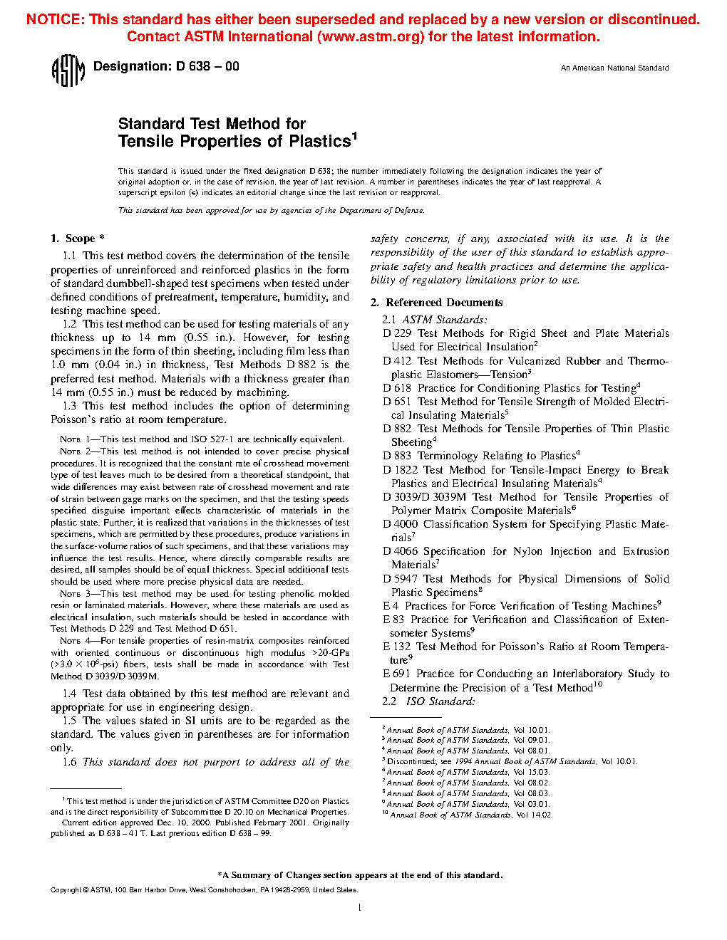 Note 1: This standard and ISO 527-1 address the same subject matter, but differ in technical content.