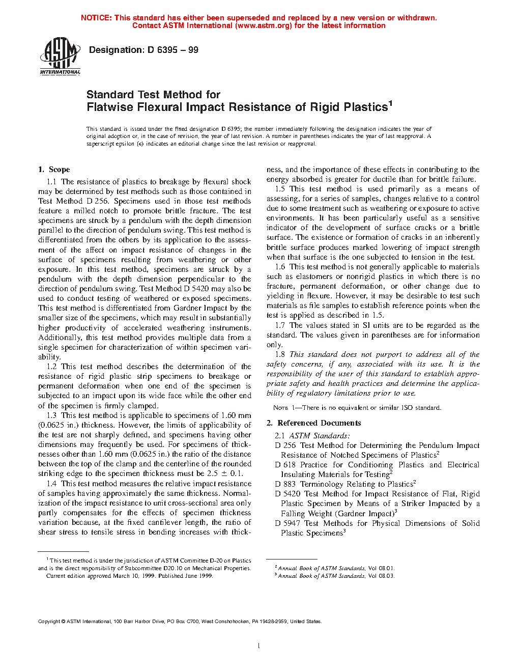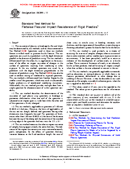 1.2 This test method describes the determination of the resistance of rigid plastic strip specimens to breakage or permanent deformation when one end of the specimen is subjected to an impact upon its wide face while the other end of the specimen is firmly clamped.