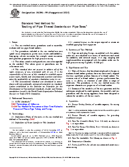 1.1 This test method covers procedures used to assemble, evaluate and test pipe thread sealants.