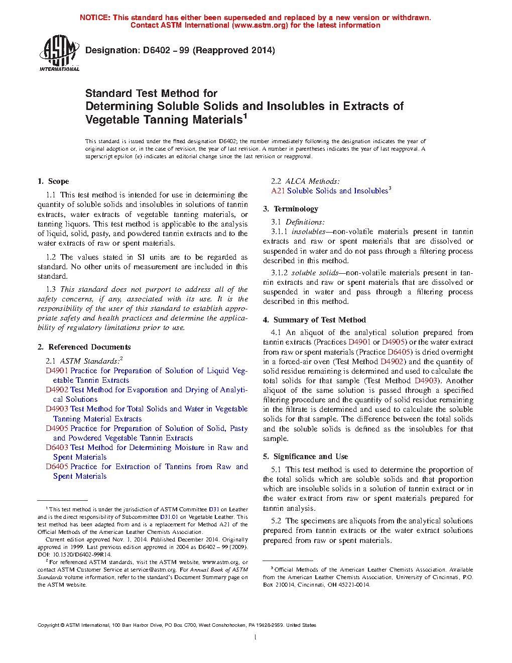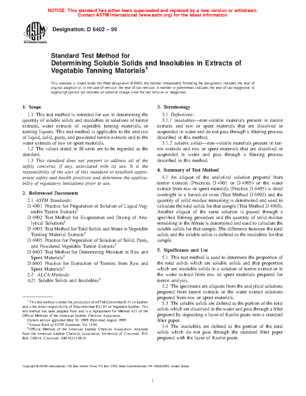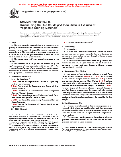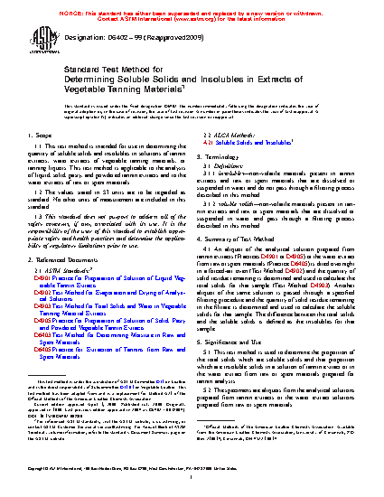 5.1 This test method is used to determine the proportion of the total solids which are soluble solids and that proportion which are insoluble solids in a solution of tannin extract or in the water extract from raw or spent materials prepared for tannin analysis.