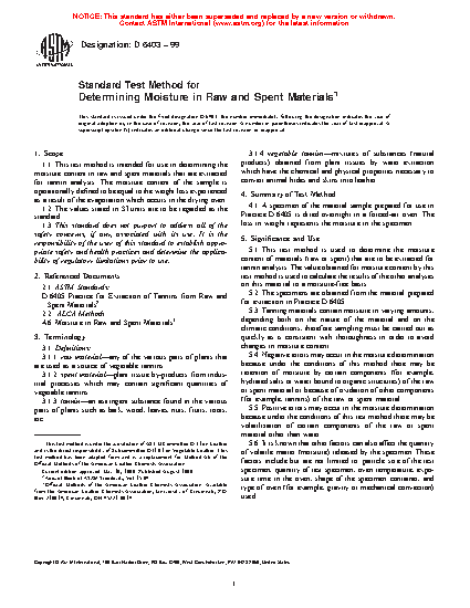 5.1 This test method is used to determine the moisture content of materials (raw or spent) that are to be extracted for tannin analysis. The value obtained for moisture content by this test method is used to calculate the results of the other analyses on this material to a moisture-free basis.