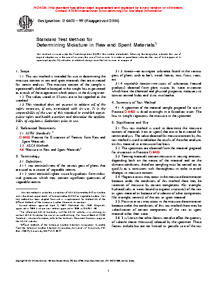 5.4 Negative errors may occur in the moisture determination because under the conditions of this method there may be retention of moisture by certain components (for example, hydrated salts or water bound to organic structures) of the raw or spent material or because of oxidation of other components (for example, tannins) of the raw or spent material.
