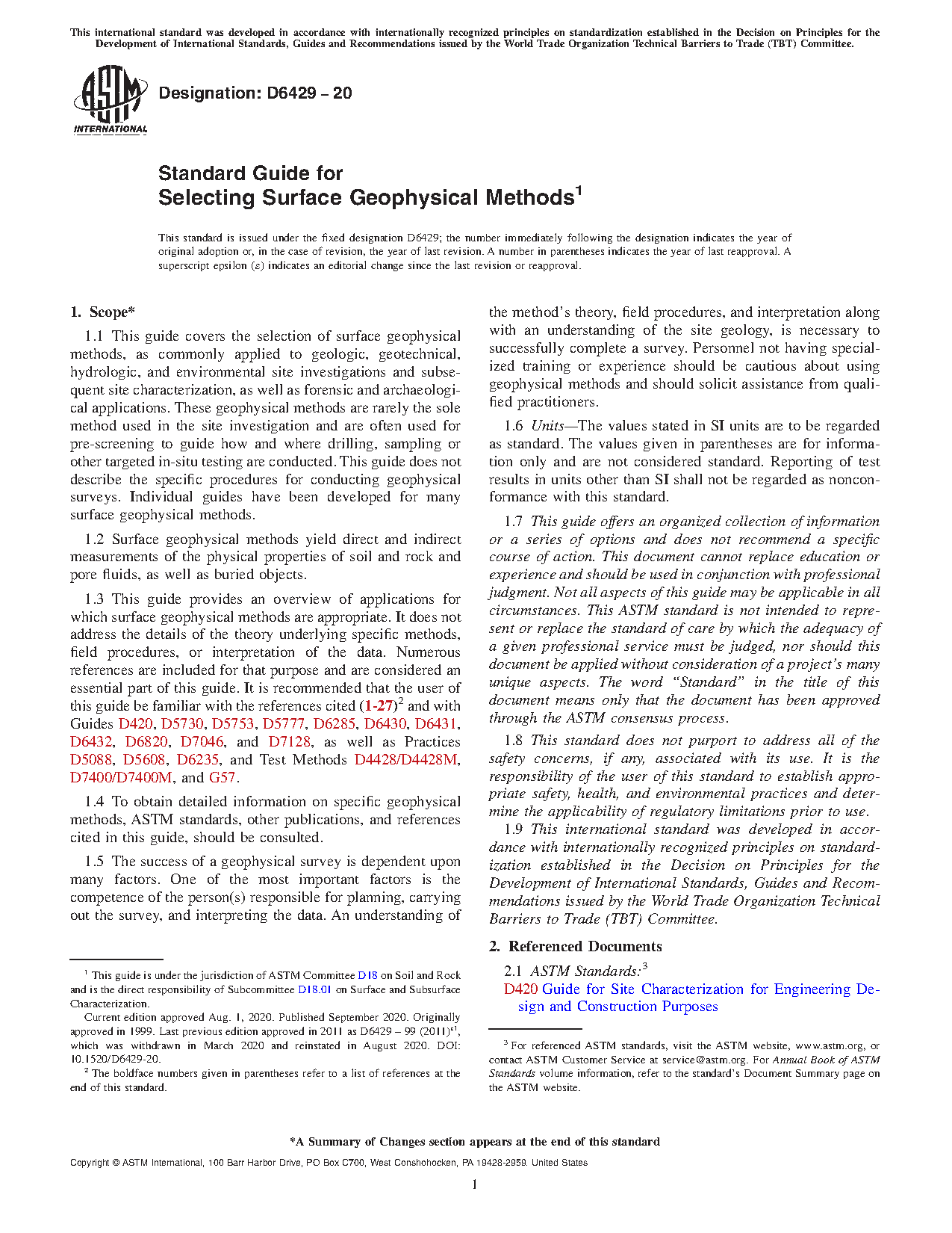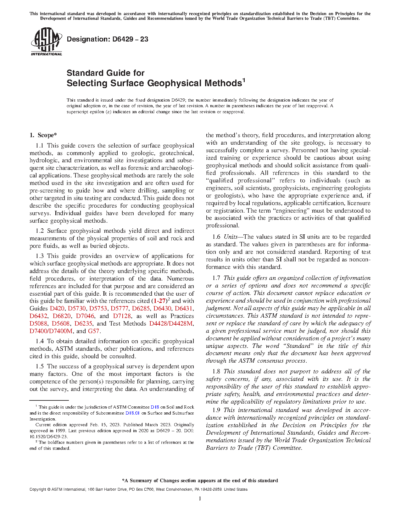 1.5 To obtain detailed information on specific geophysical methods, ASTM standards, other publications, and references cited in this guide, should be consulted.