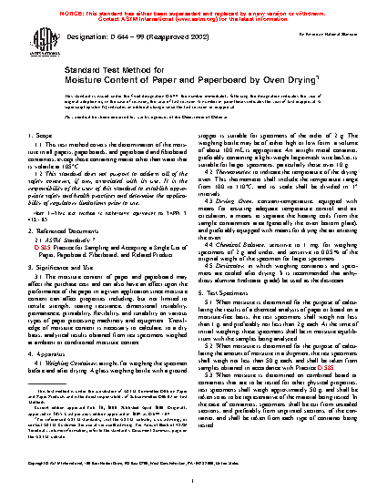 Standard Test Method for Moisture Content of Paper and Paperboard by Oven Drying