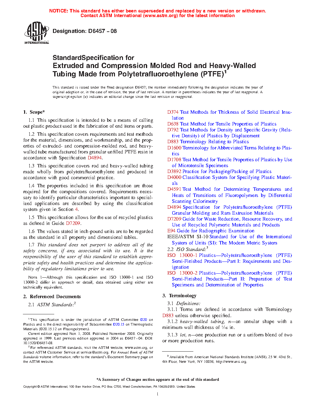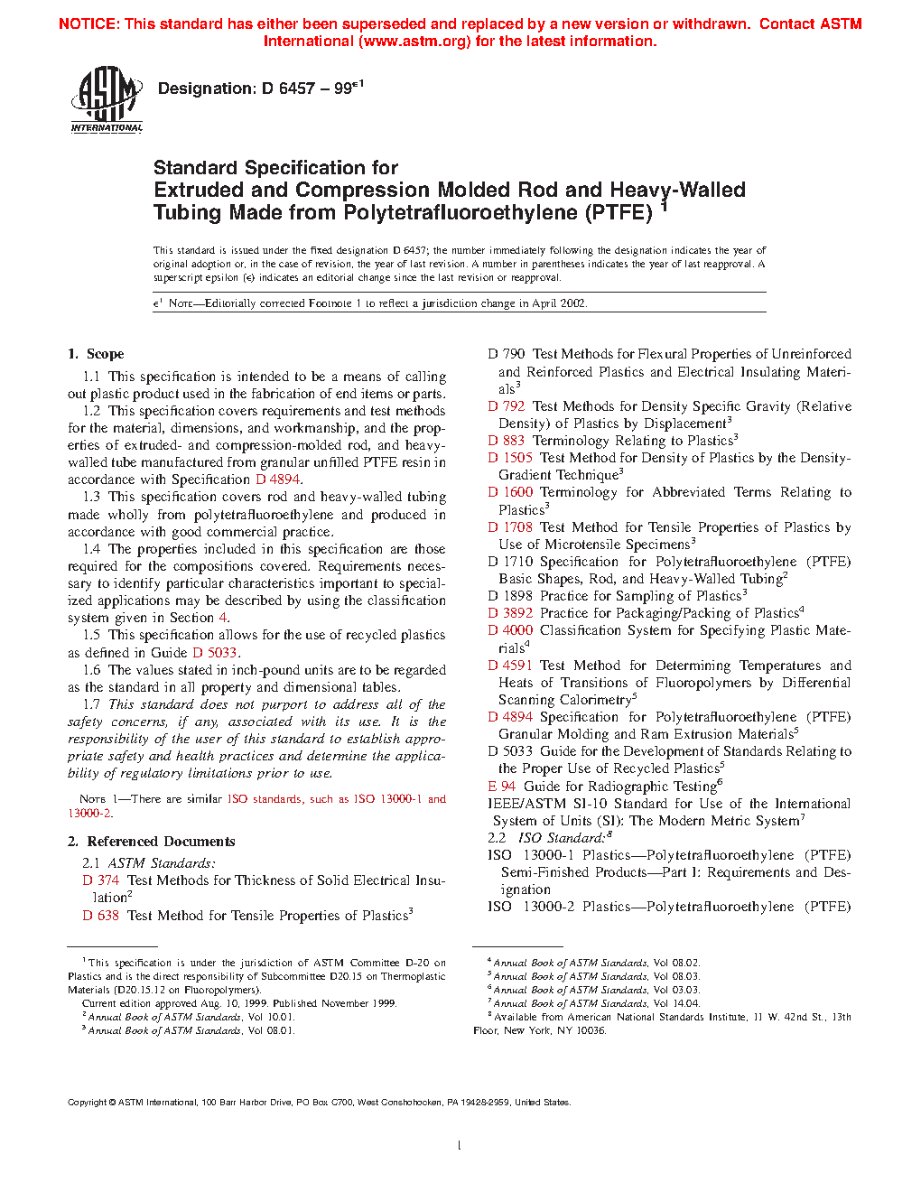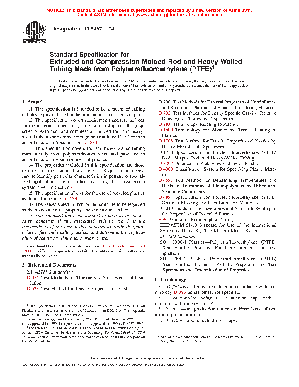 1.3 This specification covers rod and heavy-walled tubing made wholly from polytetrafluoroethylene and produced in accordance with good commercial practice.