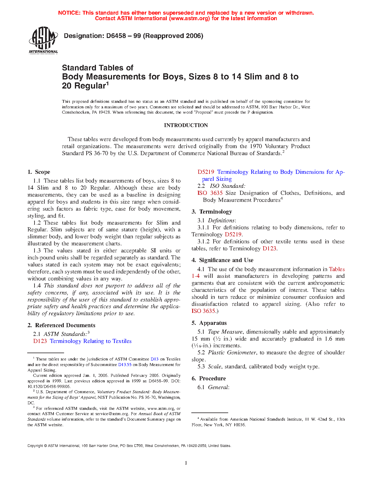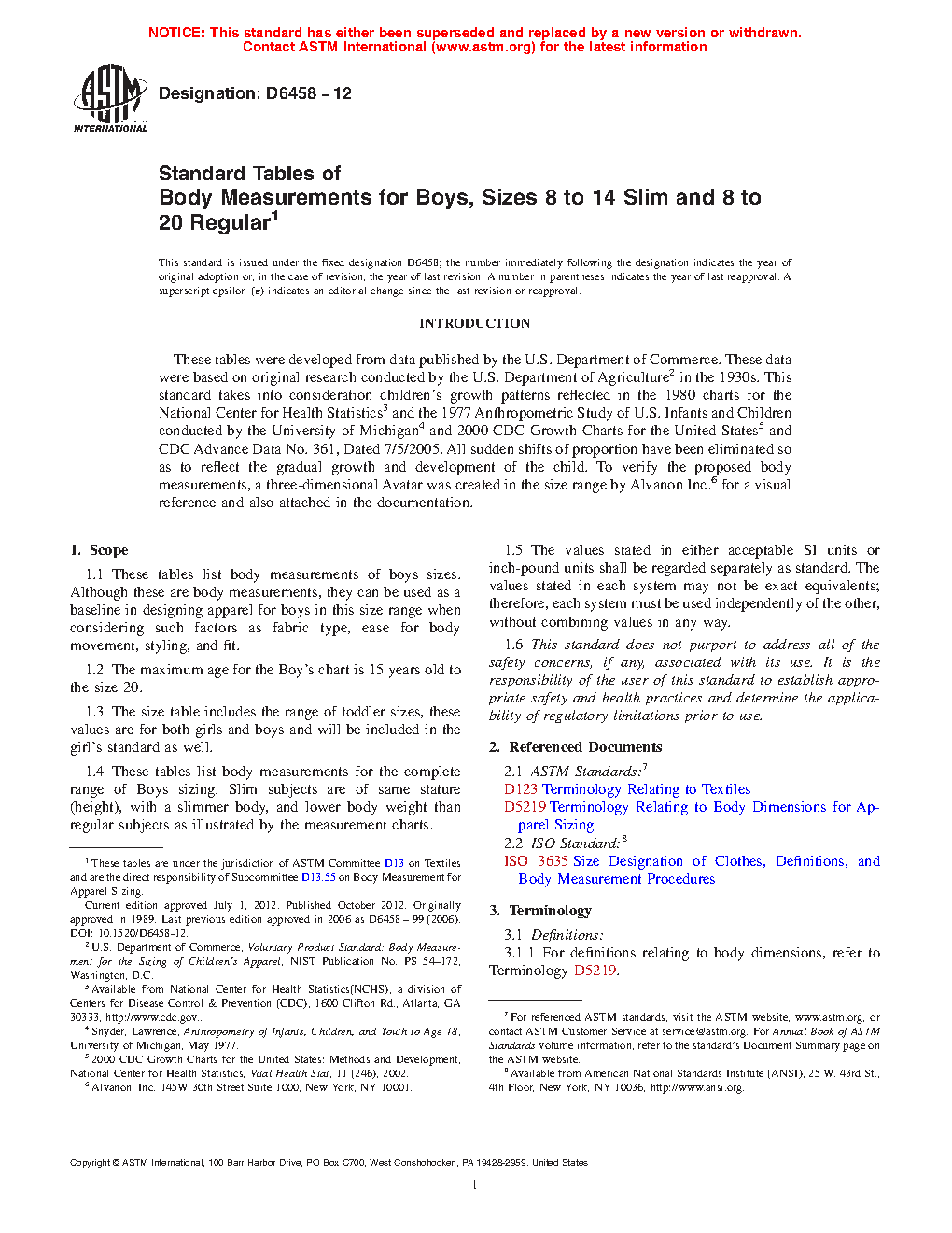 1.1 These tables list body measurements of boys sizes. Although these are body measurements, they can be used as a baseline in designing apparel for boys in this size range when considering such factors as fabric type, ease for body movement, styling, and fit.