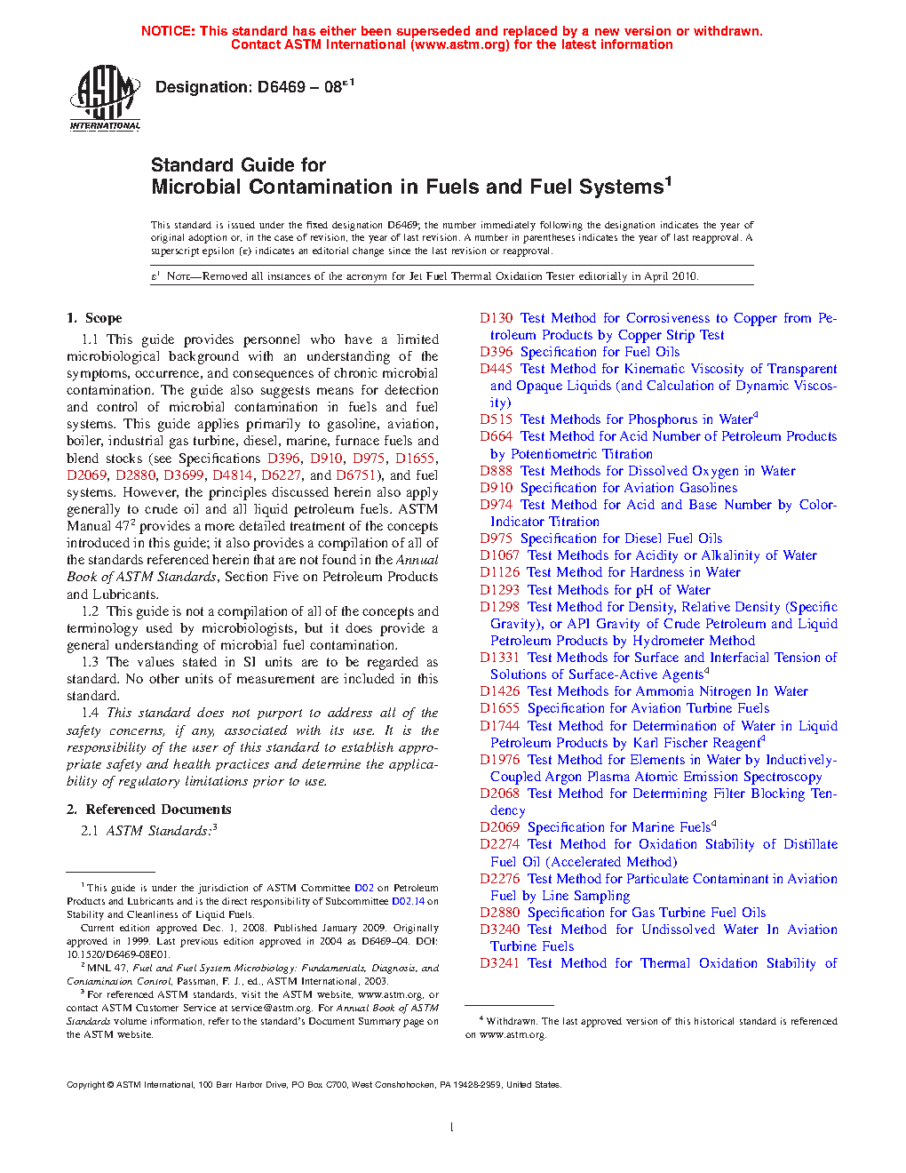 This guide provides personnel who are responsible for fuel and fuel system stewardship with the background necessary to make informed decisions regarding the possible economic or safety, or both, impact of microbial contamination in their products or systems.
