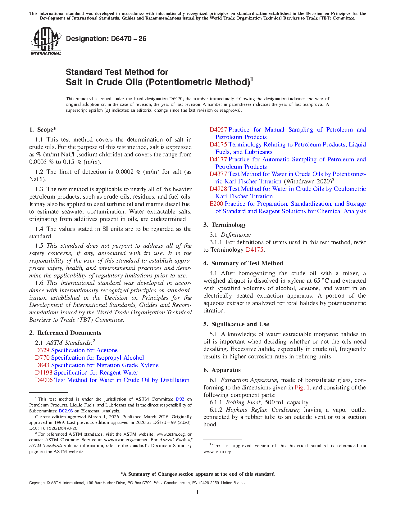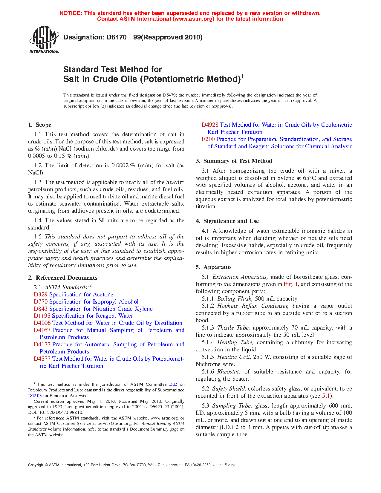 1.3 The test method is applicable to nearly all of the heavier petroleum products, such as crude oils, residues, and fuel oils. It may also be applied to used turbine oil and marine diesel fuel to estimate seawater contamination. Water extractable salts, originating from additives present in oils, are codetermined.