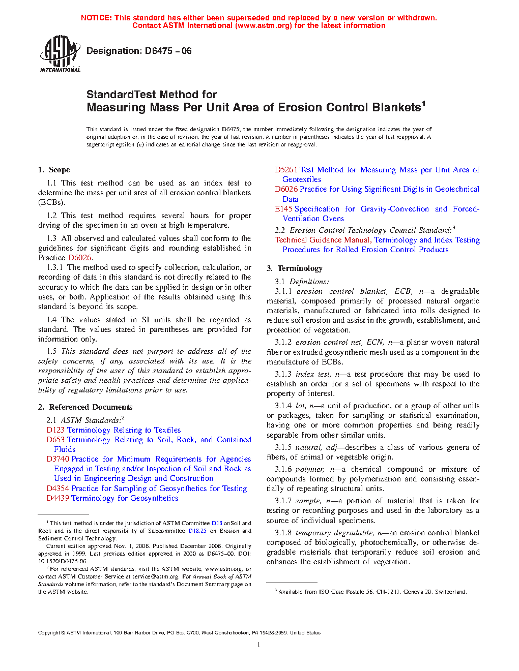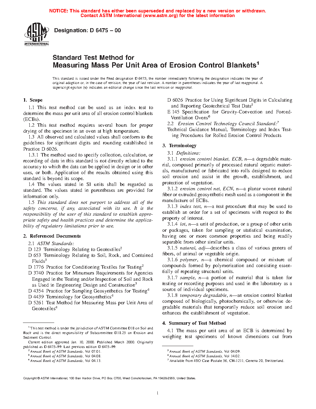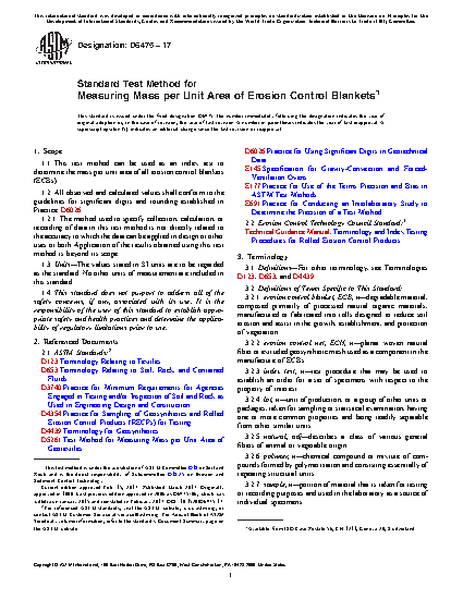 1.1 This test method can be used as an index test to determine the mass per unit area of all erosion control blankets (ECBs).
