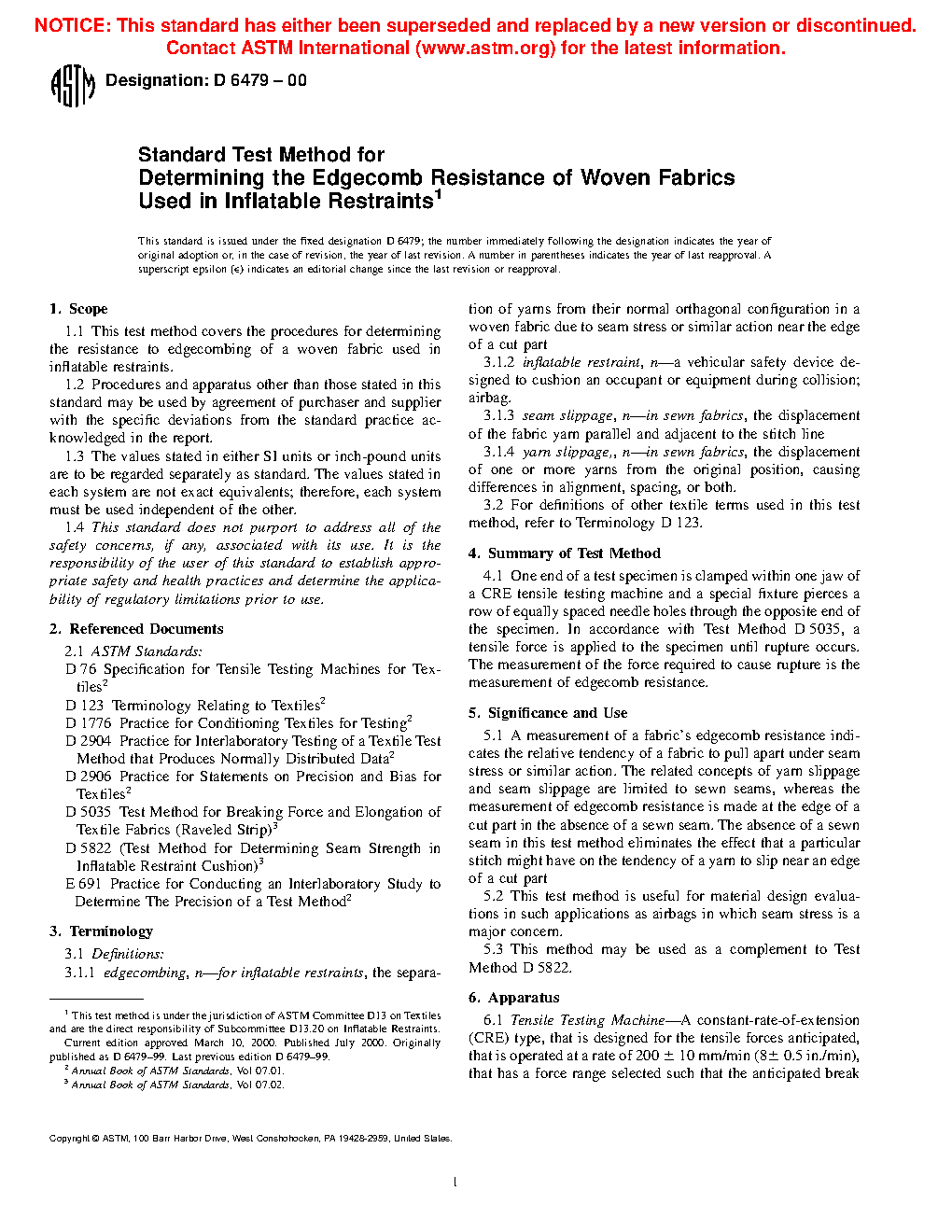 1.1 This test method covers the procedures for determining the resistance to edgecombing of a woven fabric used in inflatable restraints.
