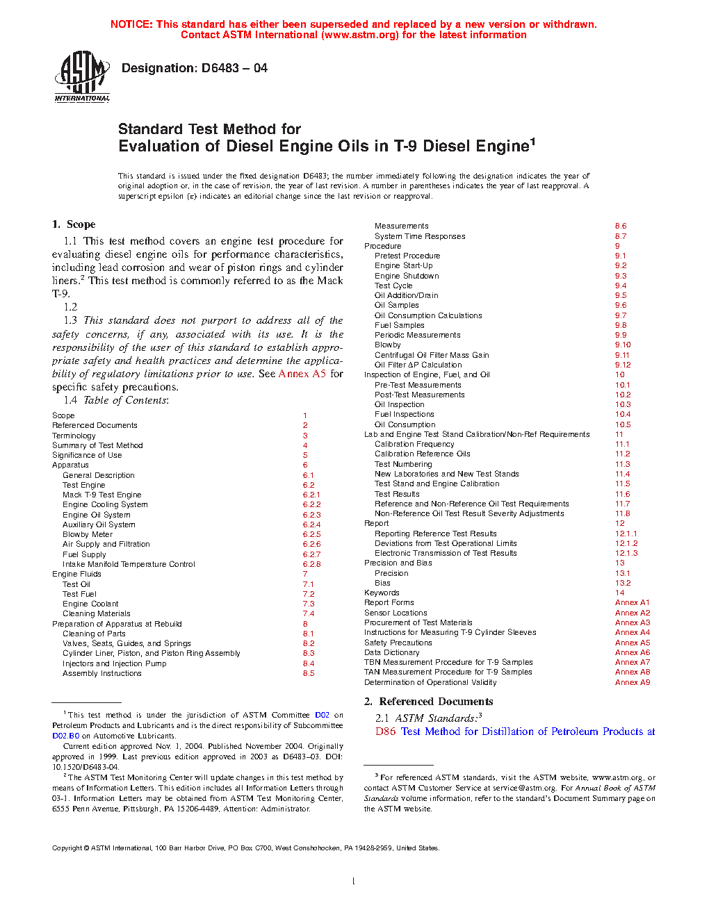 1.1 This test method covers an engine test procedure for evaluating diesel engine oils for performance characteristics, including lead corrosion and wear of piston rings and cylinder liners. This test method is commonly referred to as the Mack T-9.