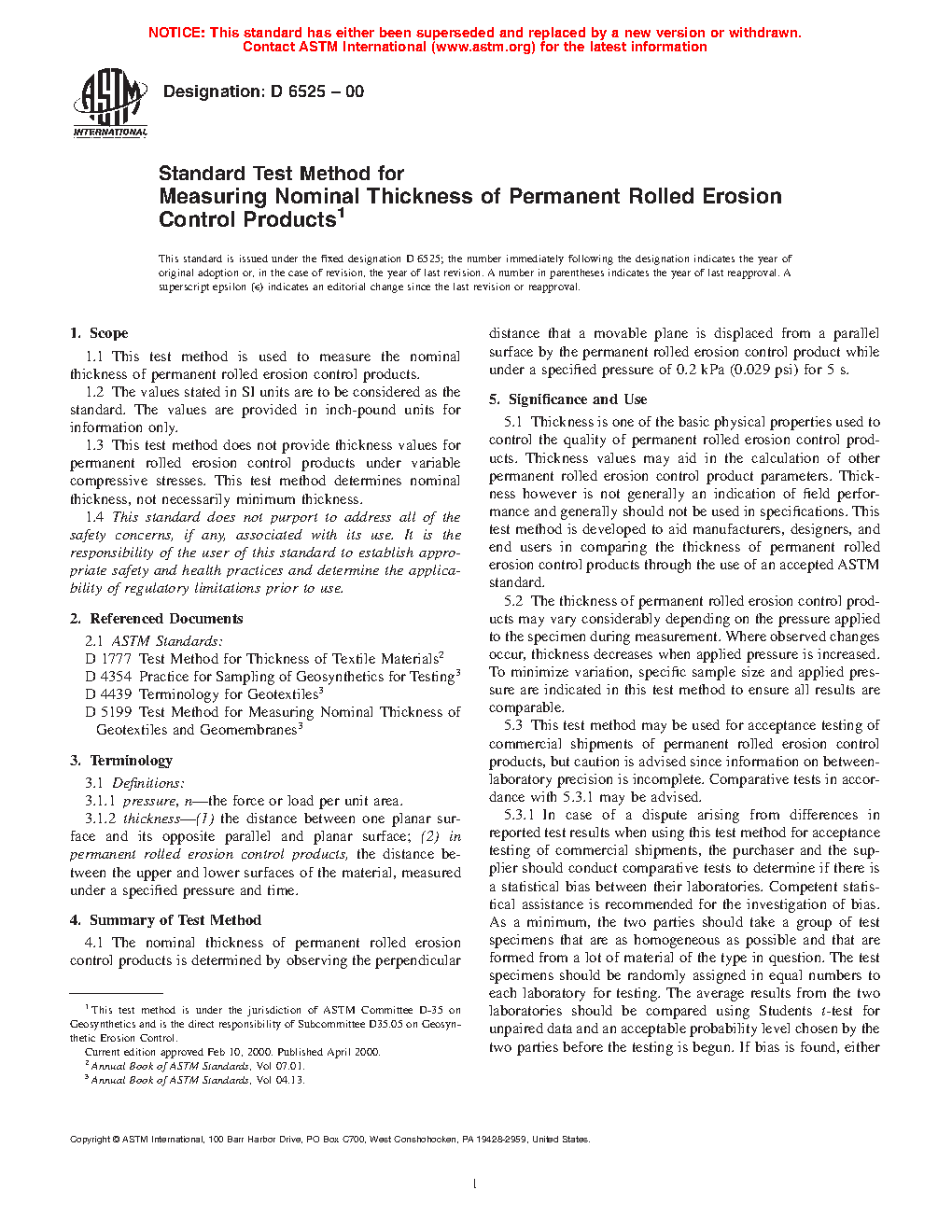 1.2 This test method does not provide thickness values for permanent rolled erosion control products under variable compressive stresses. This test method determines nominal thickness, not necessarily minimum thickness.