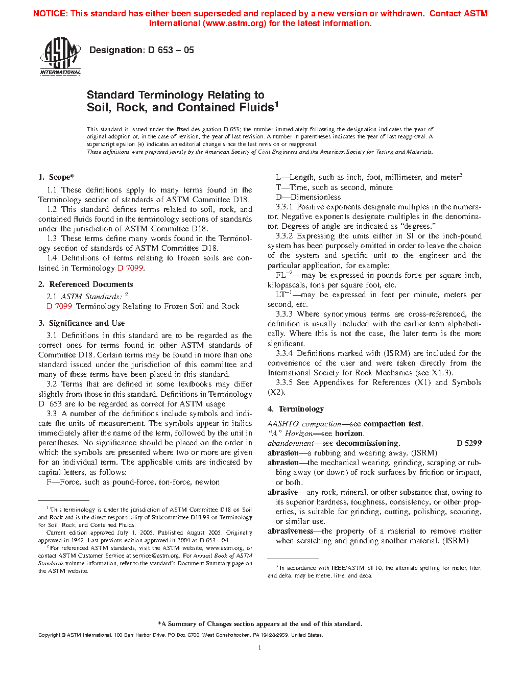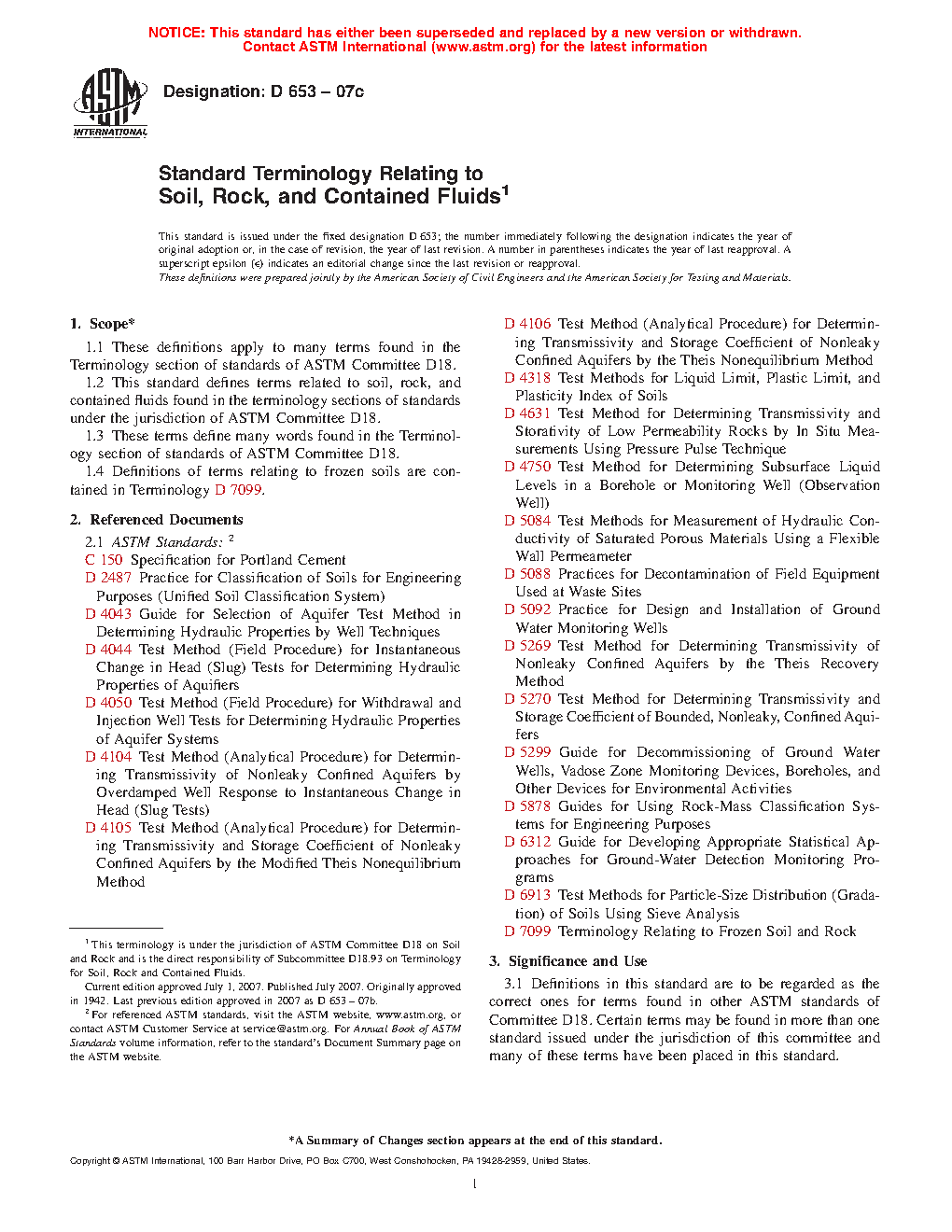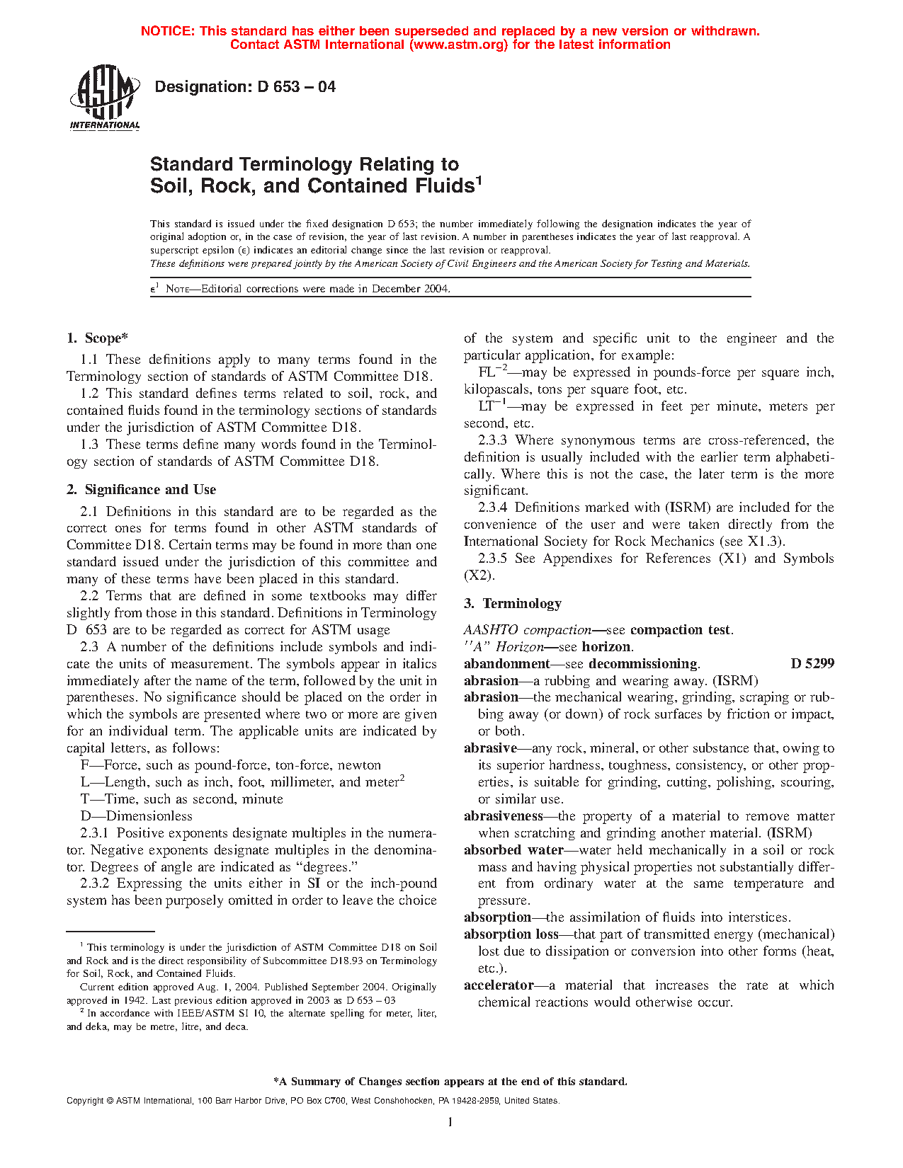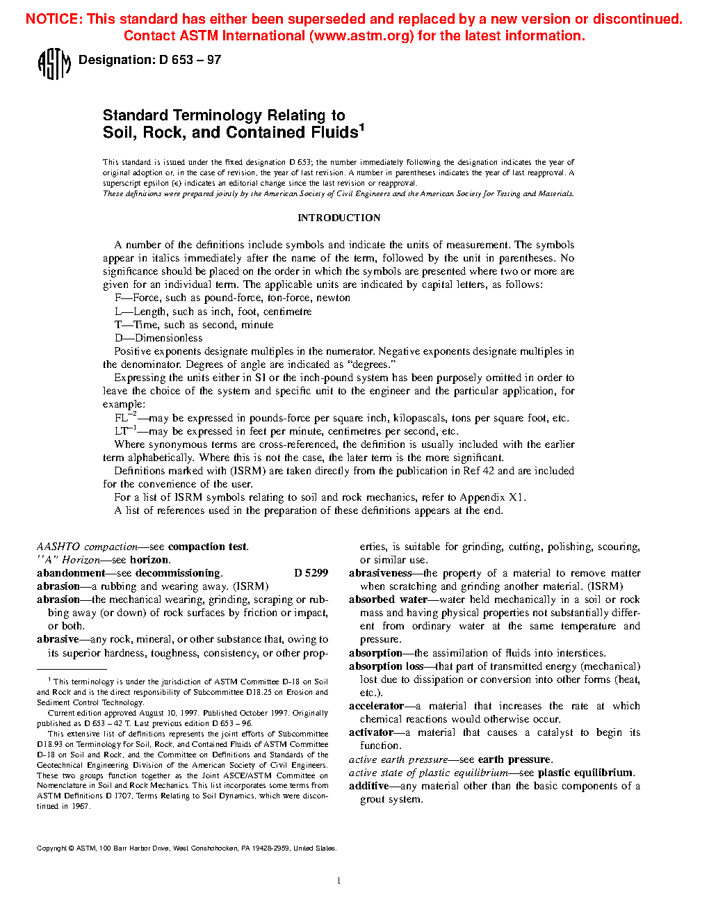 1.2Â This terminology standard defines terms related to soil, rock, and contained fluids found in the various sections of standards under the jurisdiction of ASTM Committee D18.