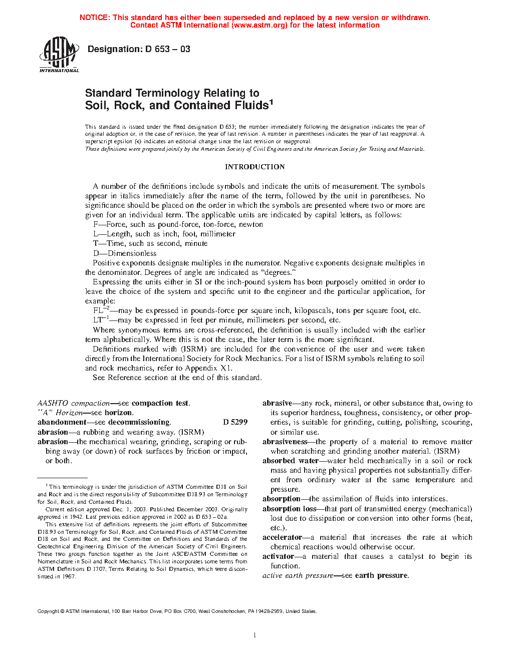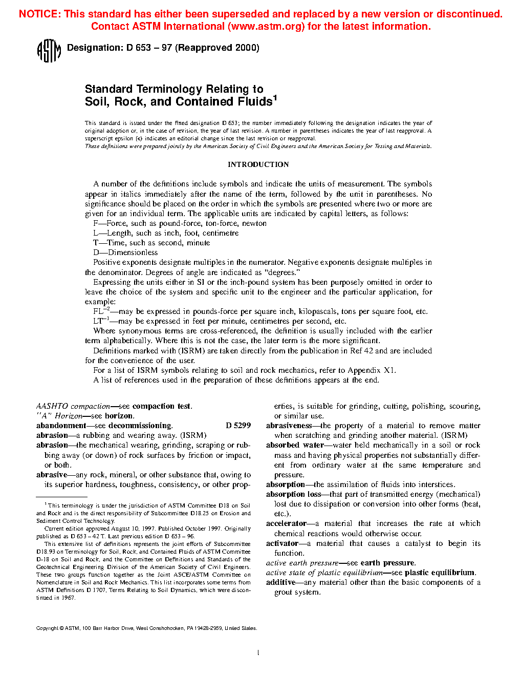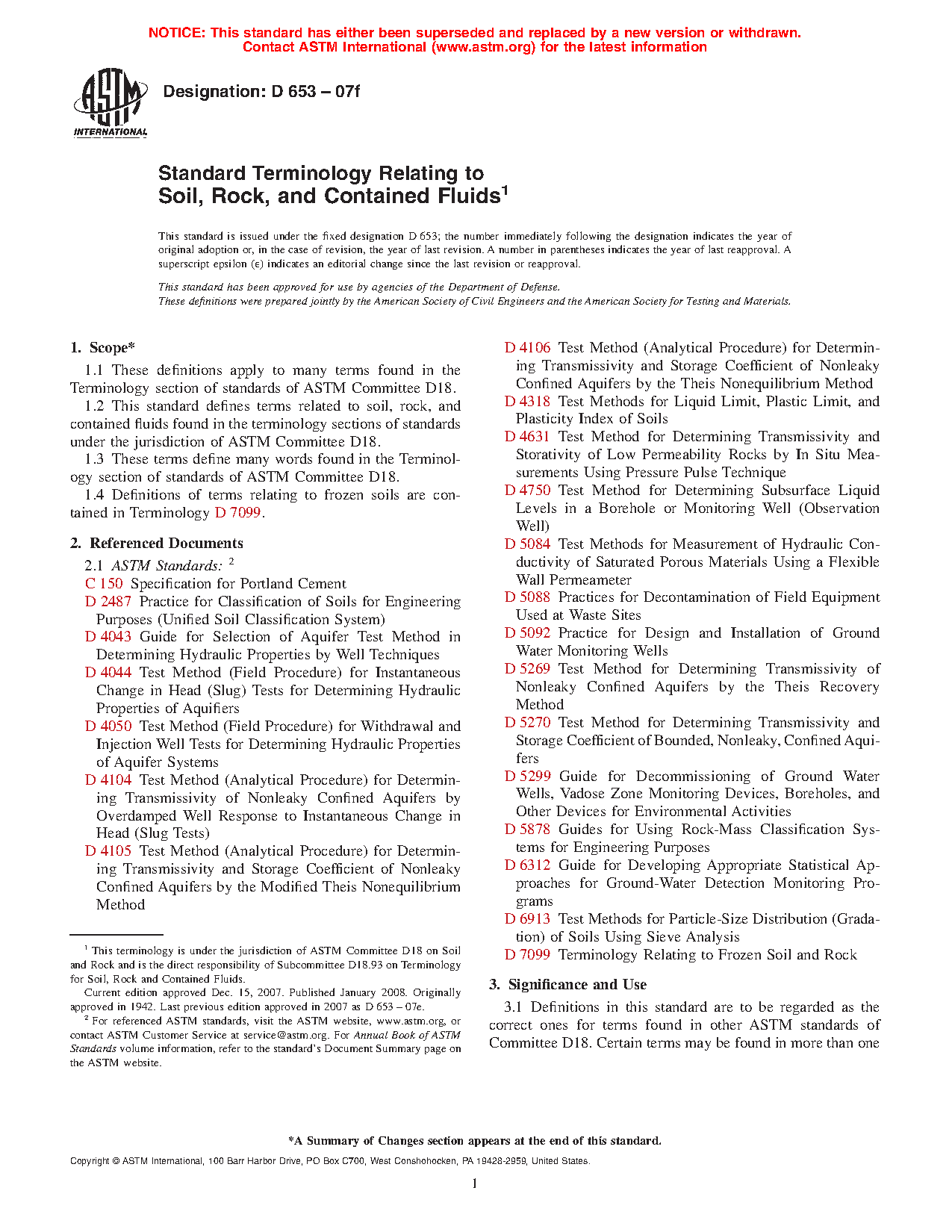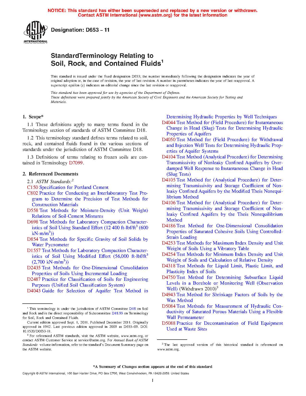 1.2Â This terminology standard defines terms related to soil, rock, and contained fluids found in the various sections of standards under the jurisdiction of ASTM Committee D18.