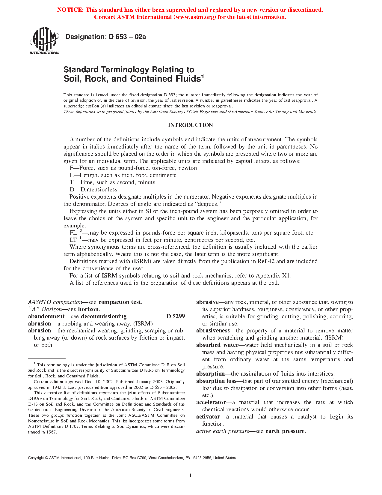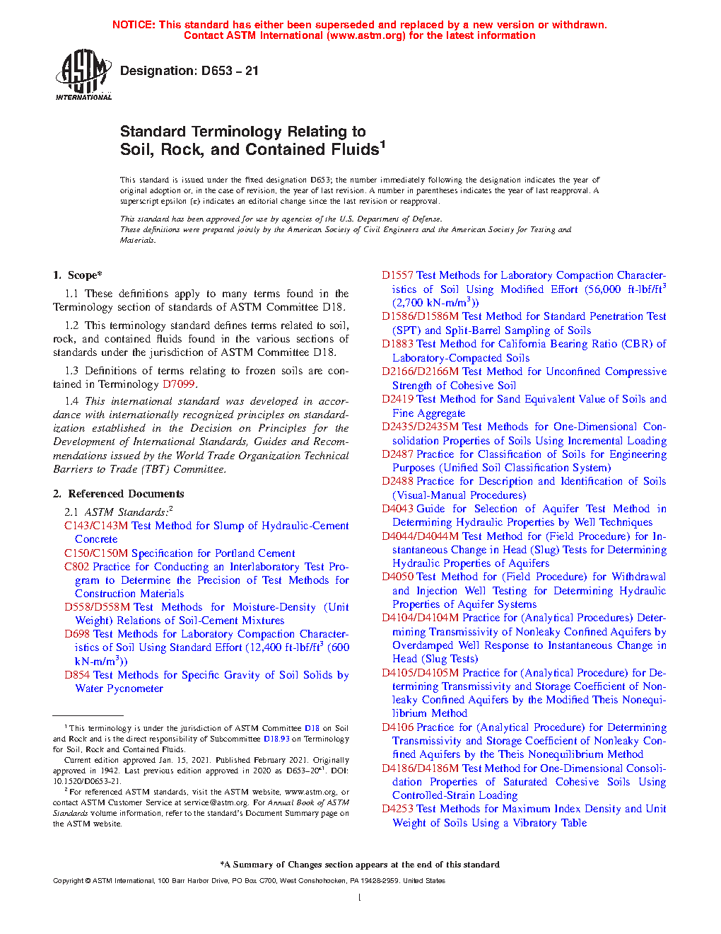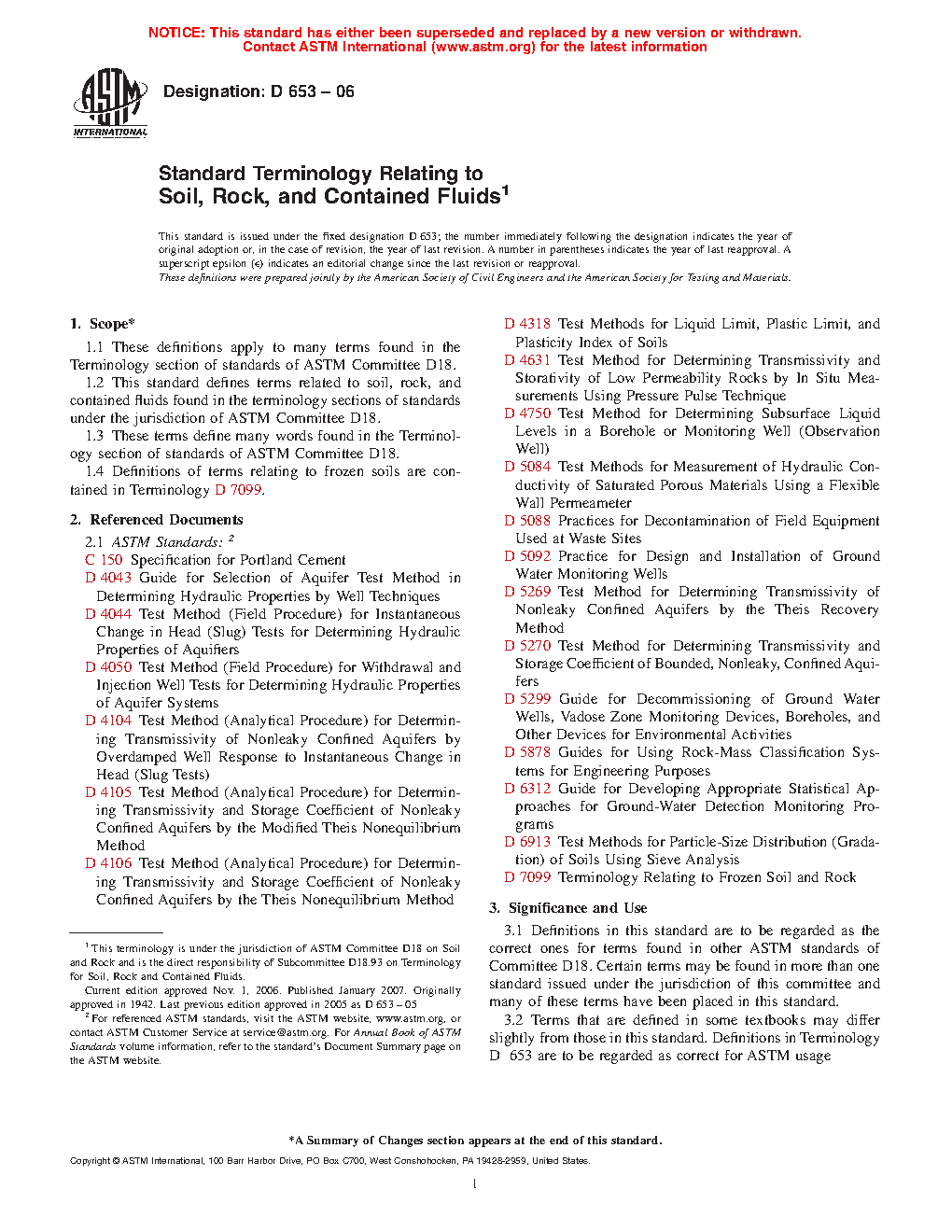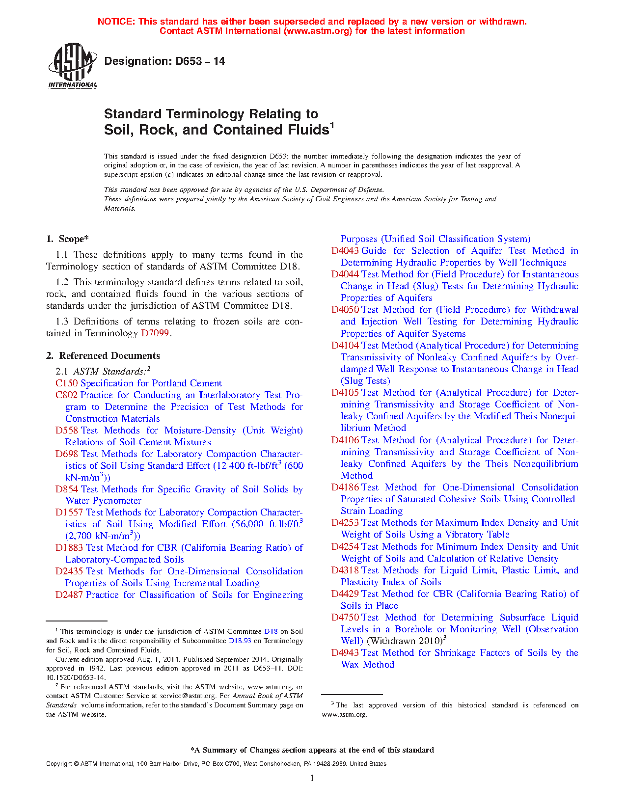 1.2Â This terminology standard defines terms related to soil, rock, and contained fluids found in the various sections of standards under the jurisdiction of ASTM Committee D18.