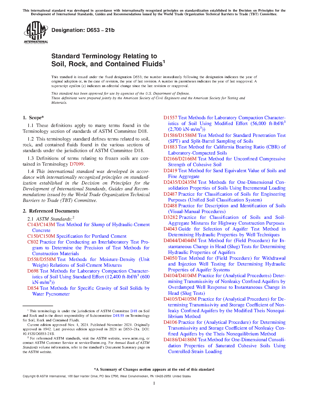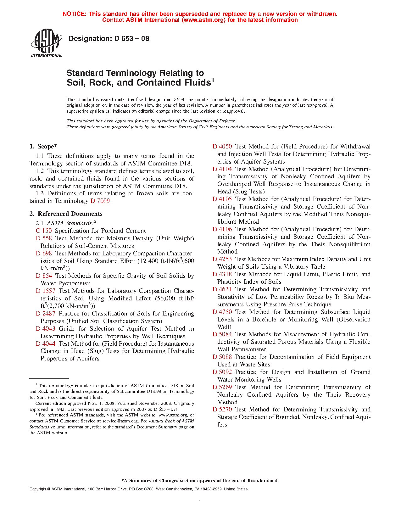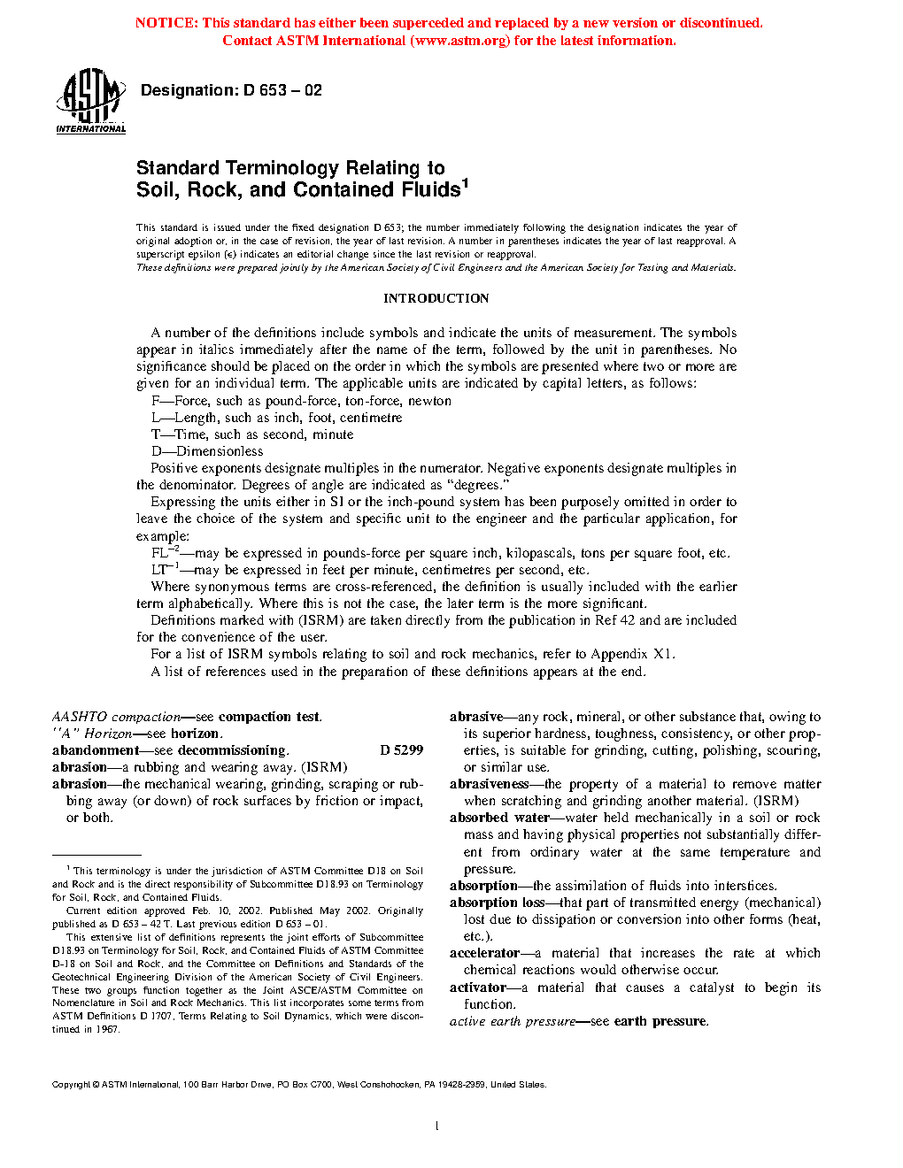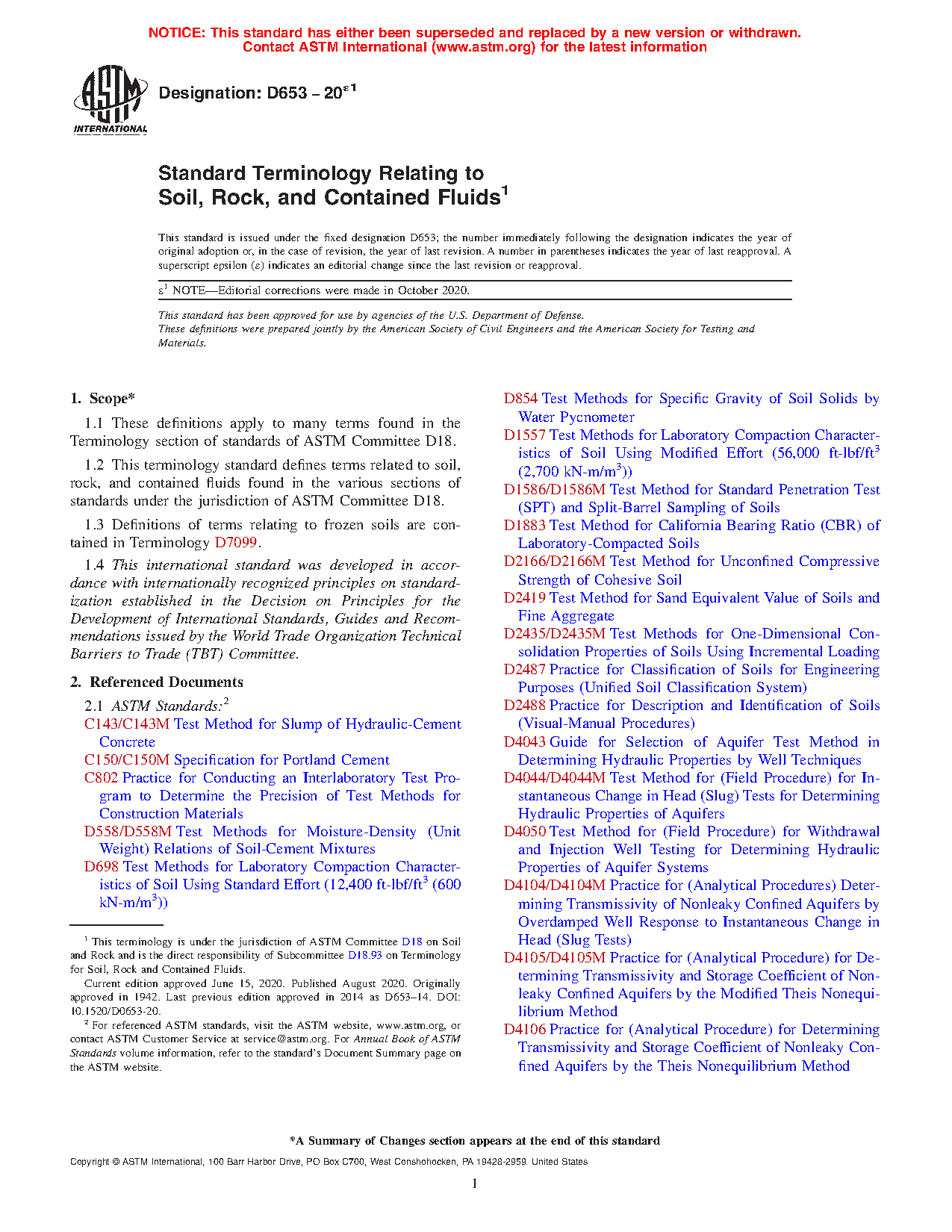 1.2Â This terminology standard defines terms related to soil, rock, and contained fluids found in the various sections of standards under the jurisdiction of ASTM Committee D18.