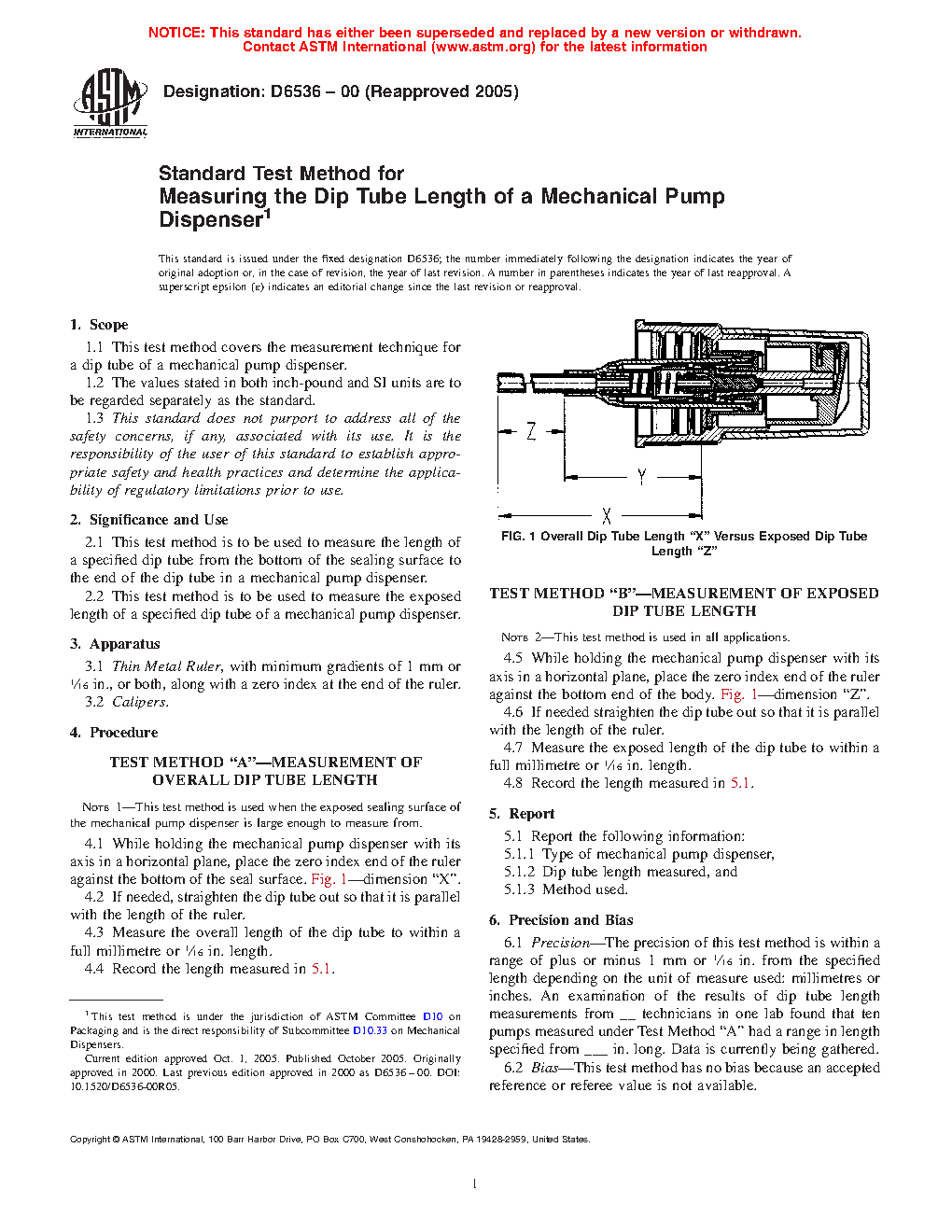 This test method is to be used to measure the exposed length of a specified dip tube of a mechanical pump dispenser.