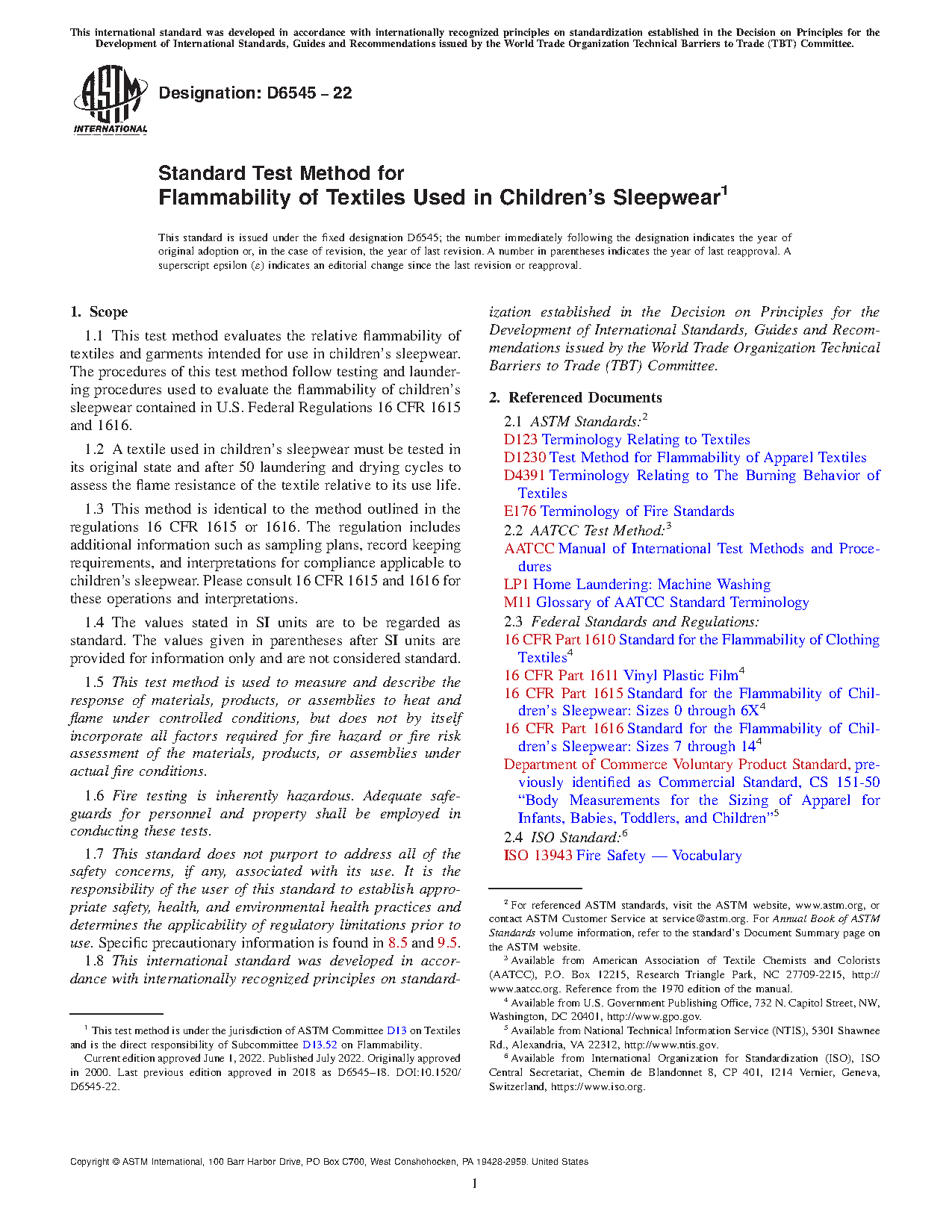 1.8 This international standard was developed in accordance with internationally recognized principles on standardization established in the Decision on Principles for the Development of International Standards, Guides and Recommendations issued by the World Trade Organization Technical Barriers to Trade (TBT) Committee.