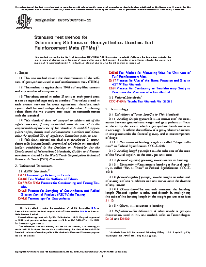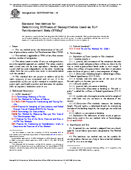 1.1 This test method covers the determination of the stiffness of geosynthetics used as Turf Reinforcement Mats (TRM).
