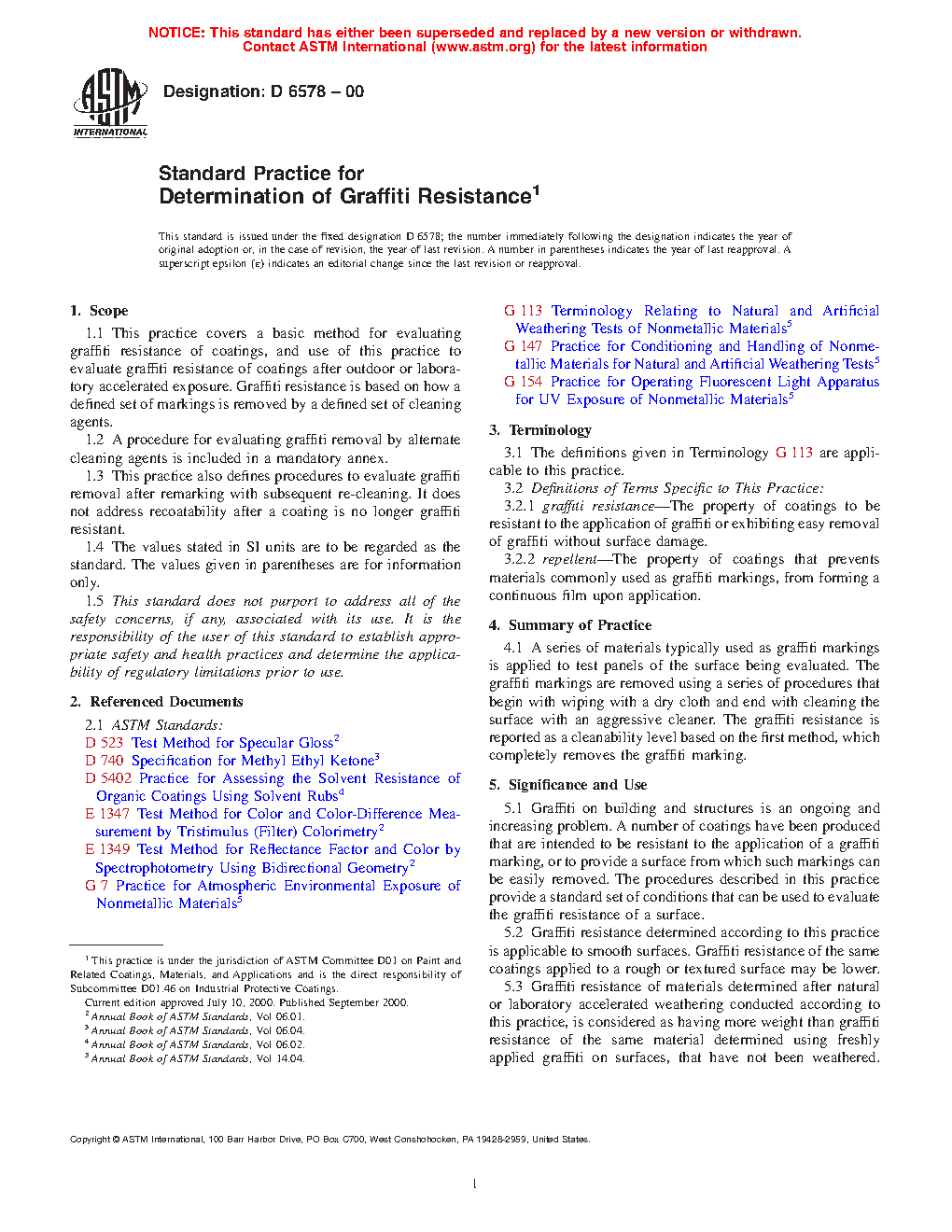 1.2 This practice also defines procedures (optional) to evaluate graffiti removal after re-marking with subsequent re-cleaning. It does not address recoatability after a coating is no longer graffiti resistant.