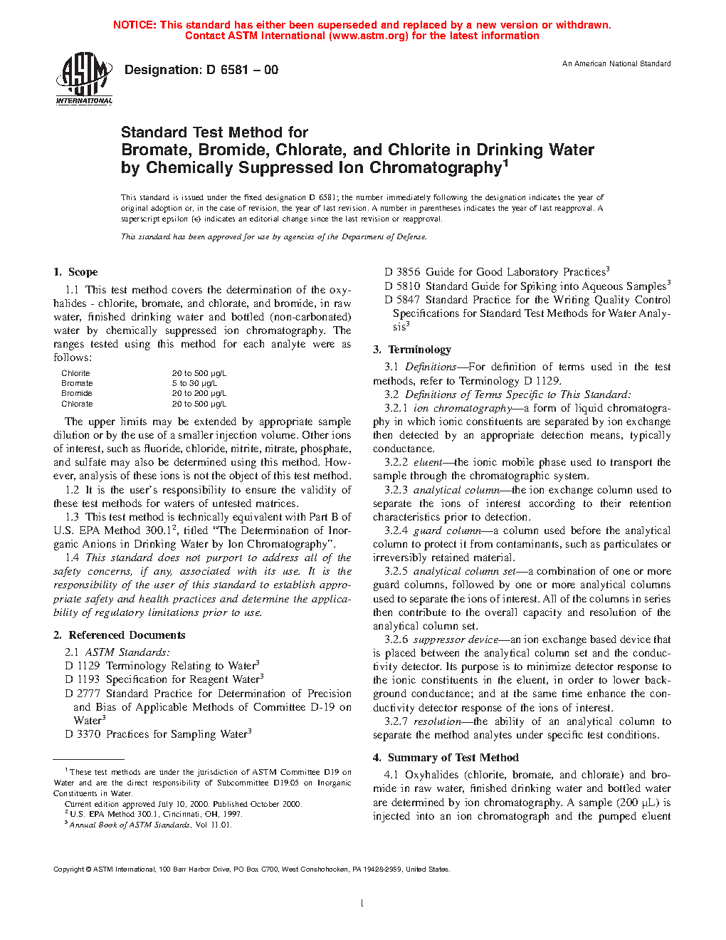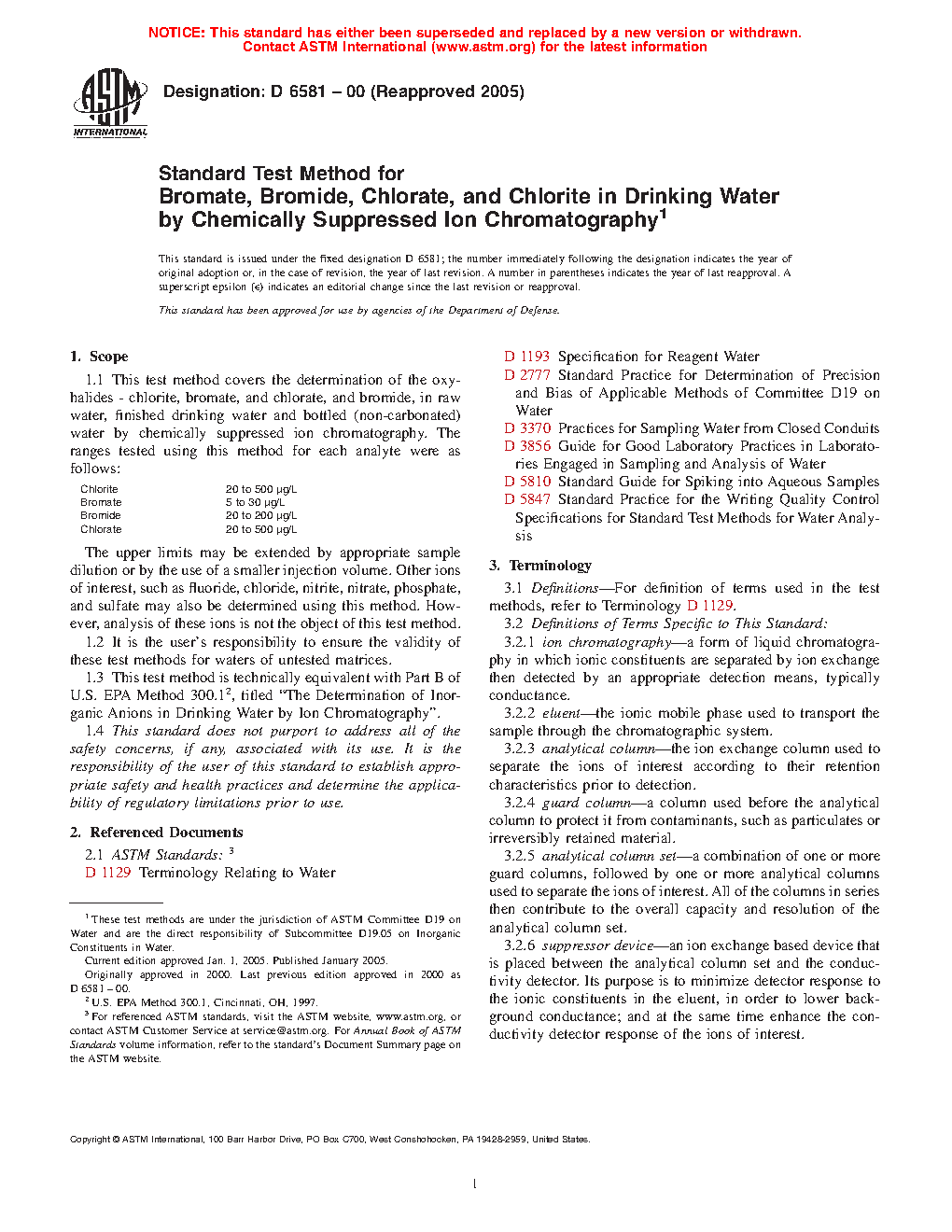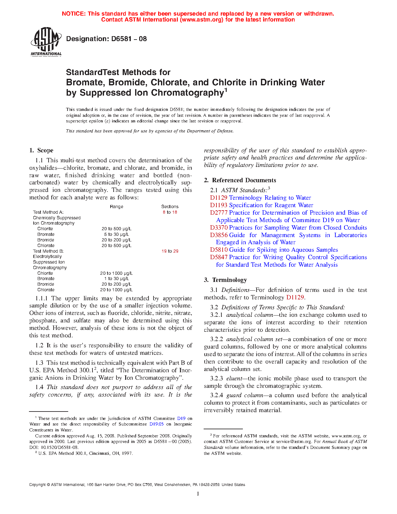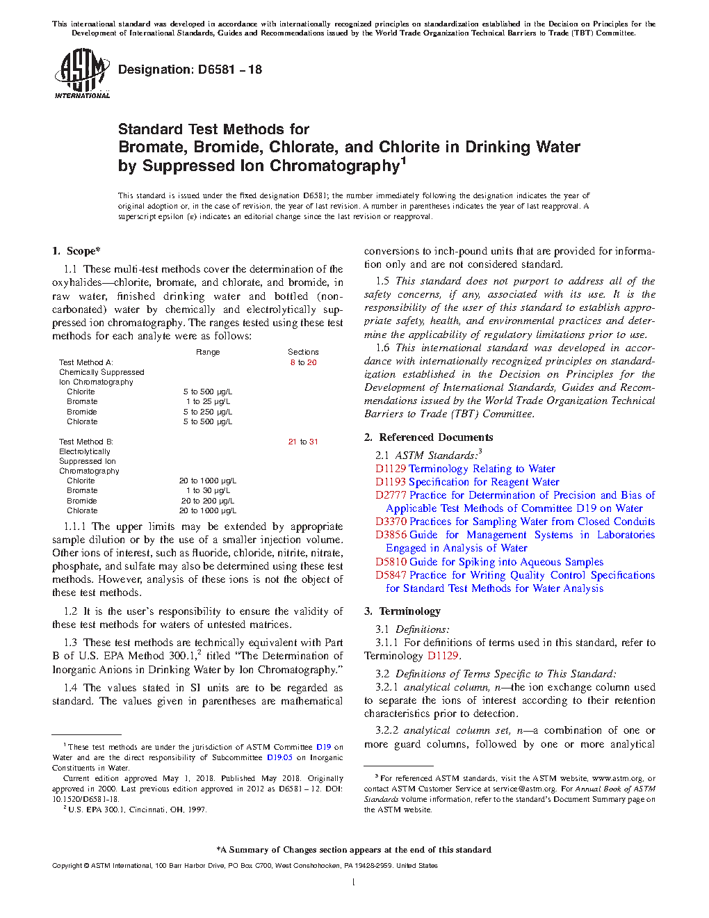 1.3 These test methods are technically equivalent with Part B of U.S. EPA Method 300.1,2 titled “The Determination of Inorganic Anions in Drinking Water by Ion Chromatography.”