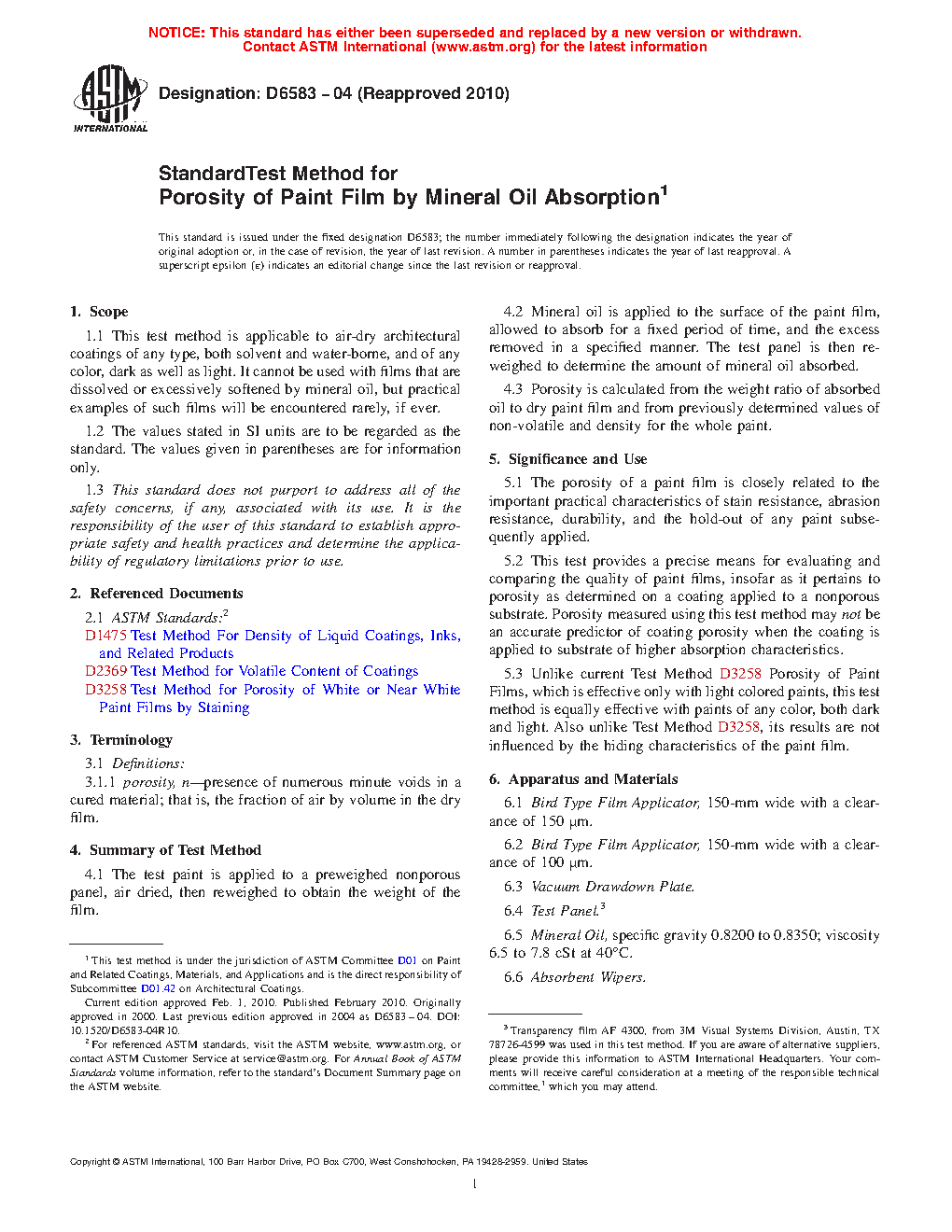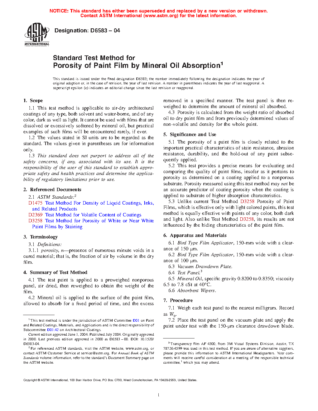 5.1 The porosity of a paint film is closely related to the important practical characteristics of stain resistance, abrasion resistance, durability, and the hold-out of any paint subsequently applied.