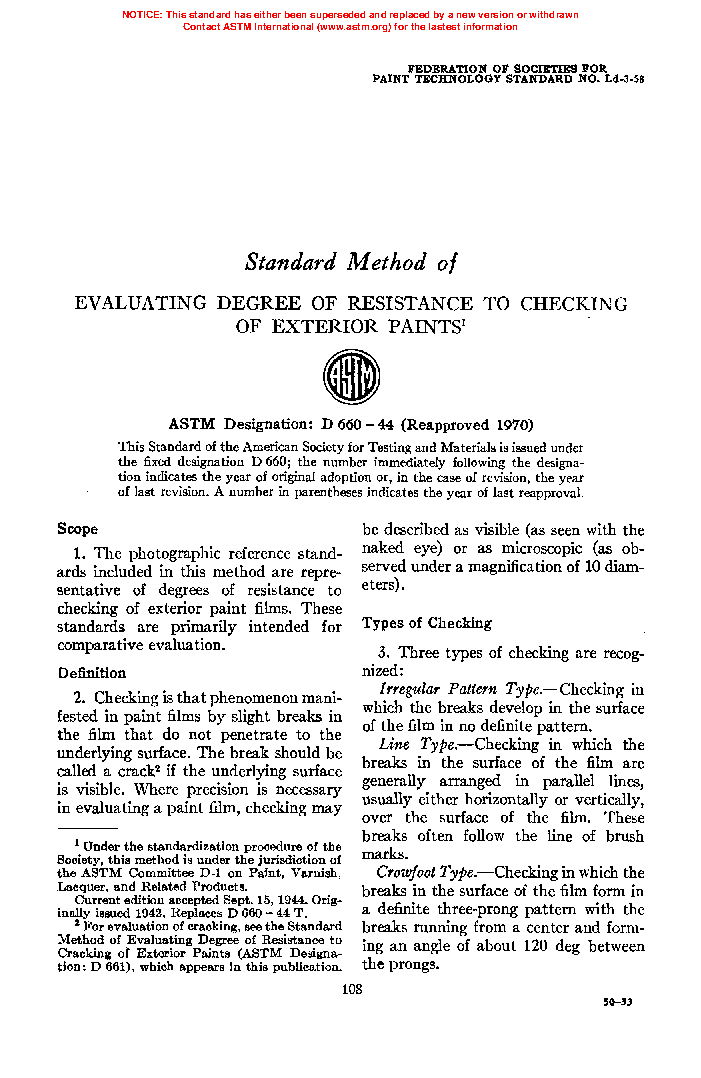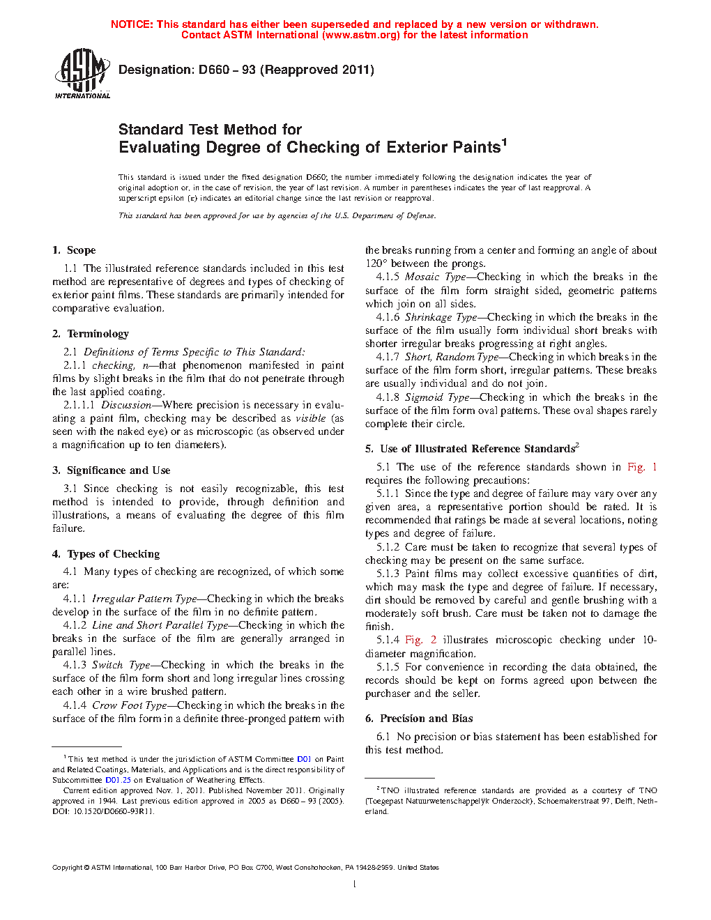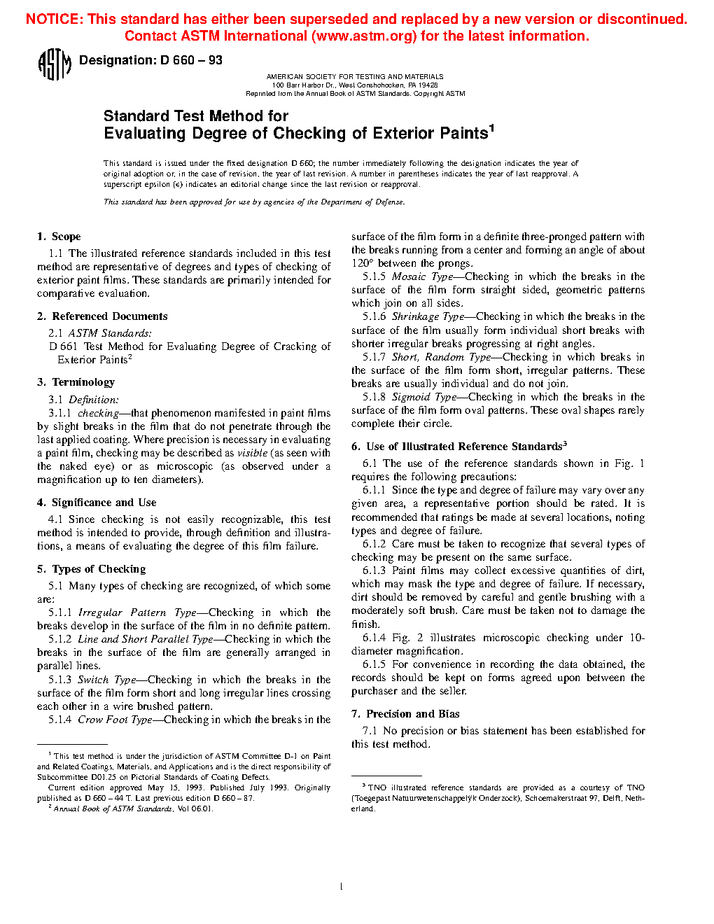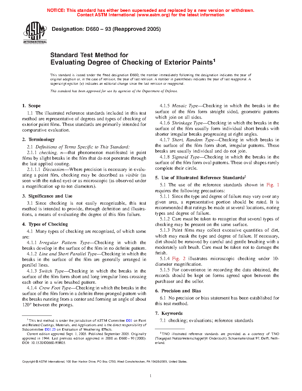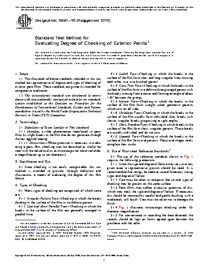 1.1 The illustrated reference standards included in this test method are representative of degrees and types of checking of exterior paint films. These standards are primarily intended for comparative evaluation.
