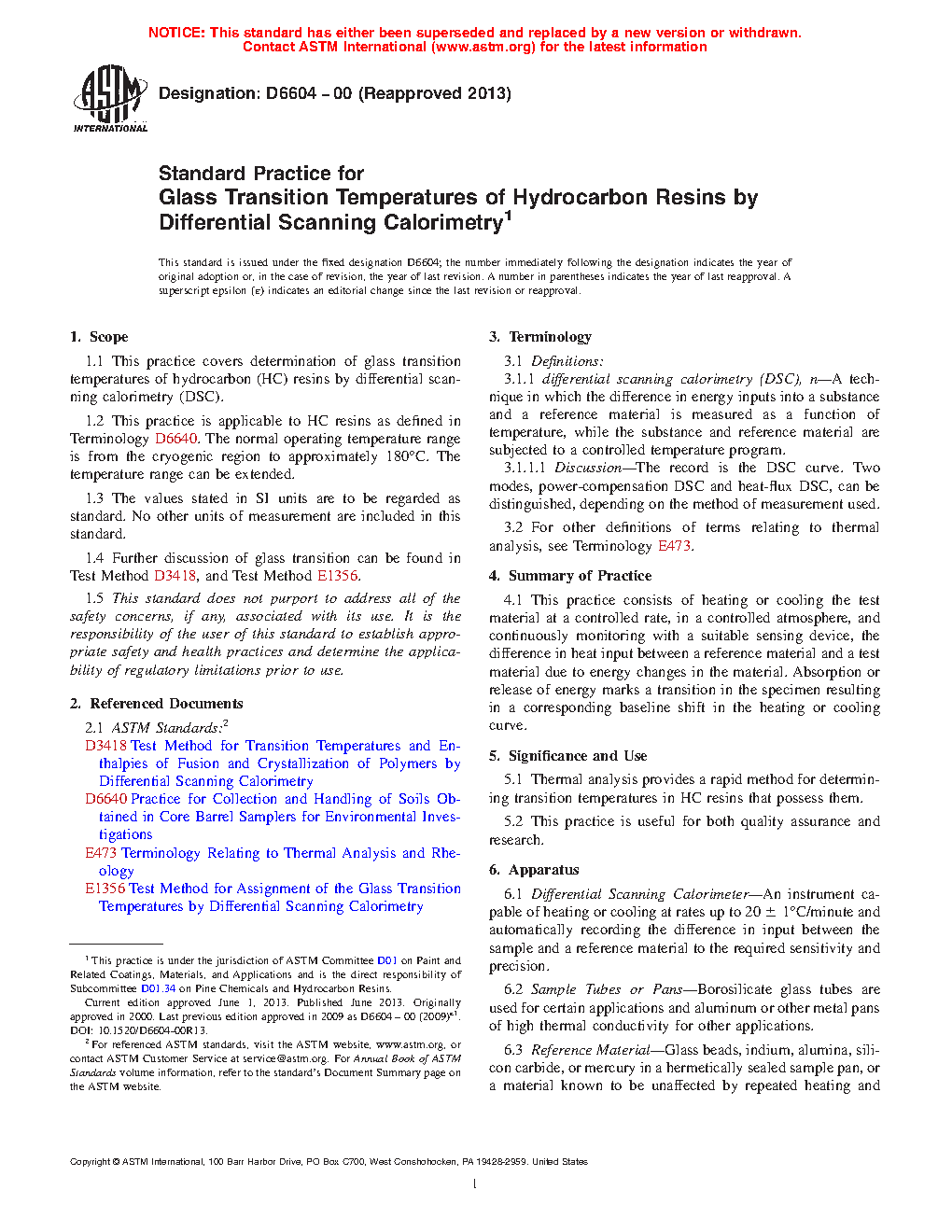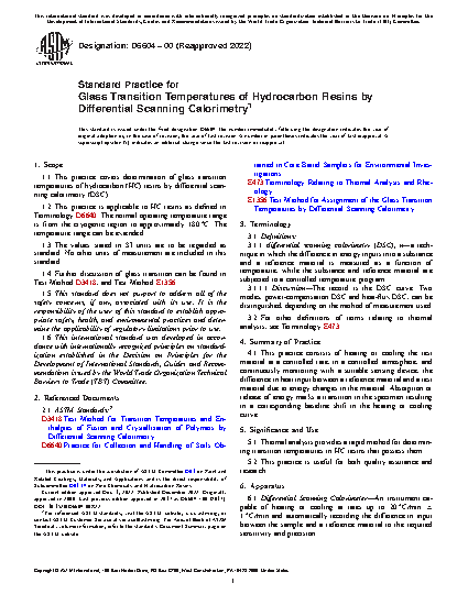 1.1 This practice covers determination of glass transition temperatures of hydrocarbon (HC) resins by differential scanning calorimetry (DSC).