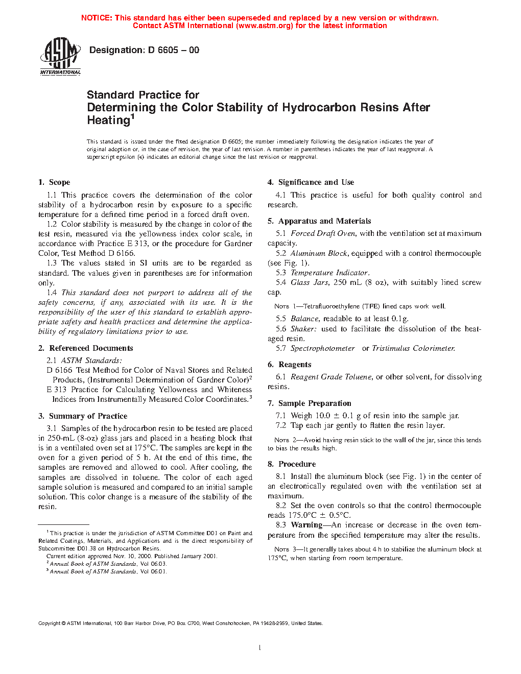 1.2 Color stability is measured by the change in color of the test resin, measured via the yellowness index color scale, in accordance with Practice E 313, or the procedure for Gardner Color, Test Method D 6166.