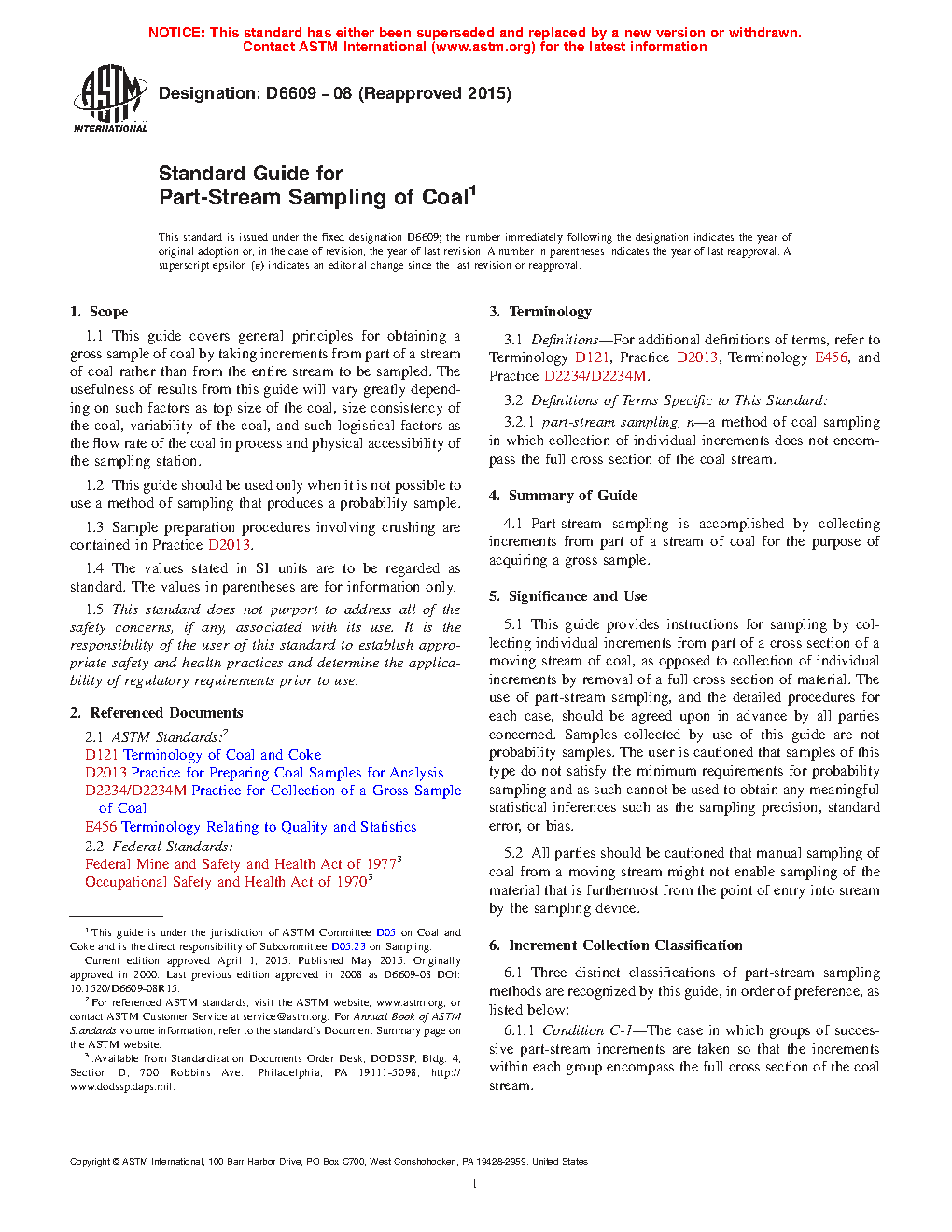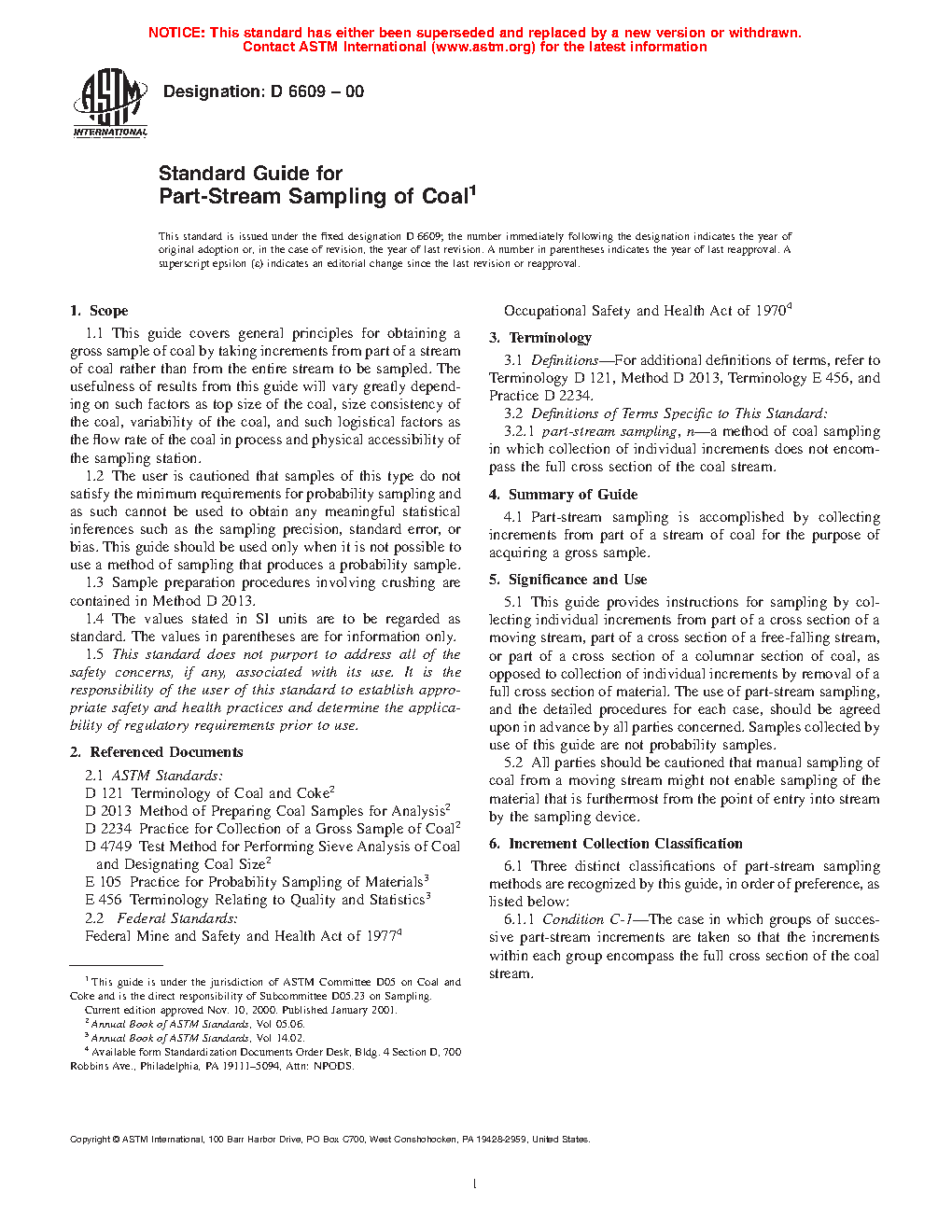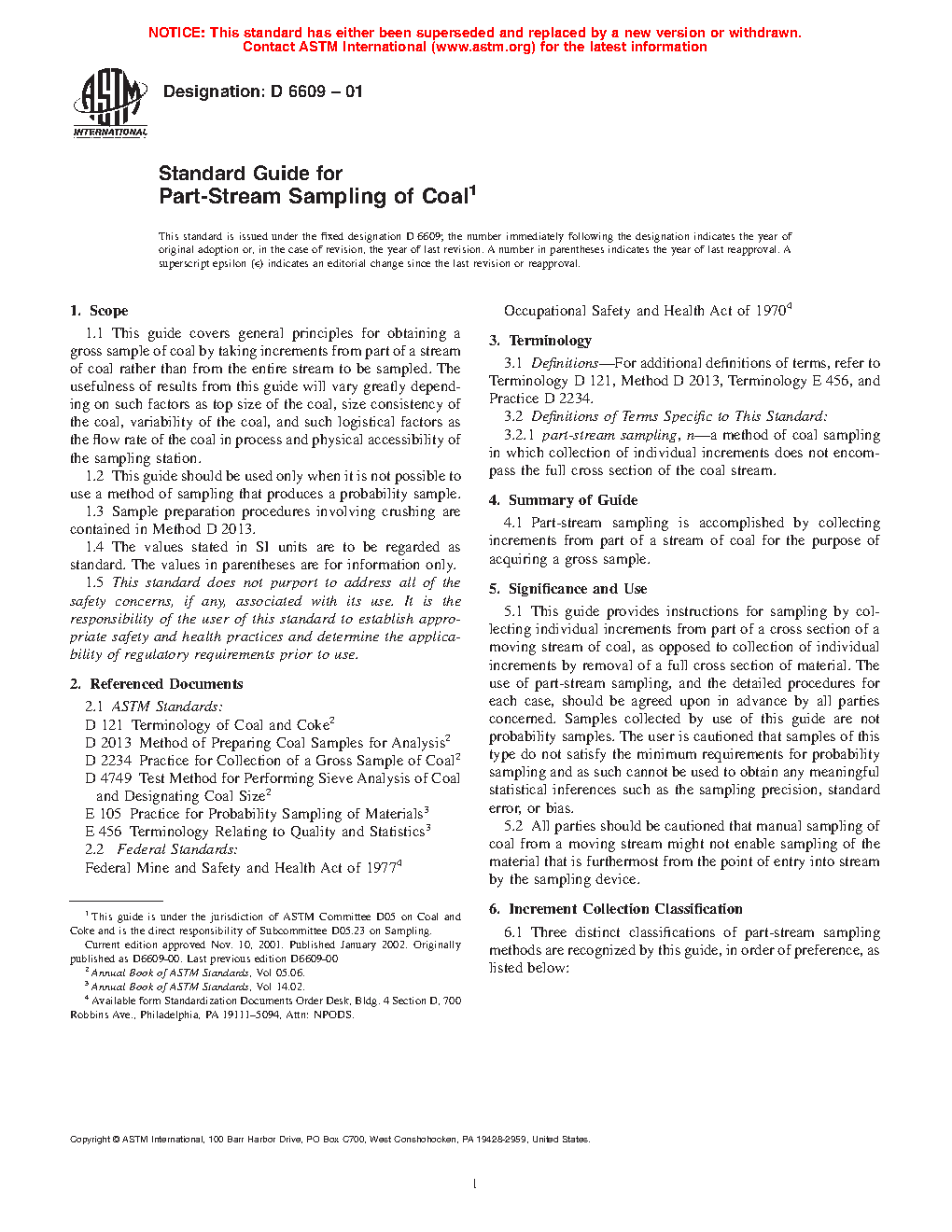 1.1 This guide covers general principles for obtaining a gross sample of coal by taking increments from part of a stream of coal rather than from the entire stream to be sampled. The usefulness of results from this guide will vary greatly depending on such factors as top size of the coal, size consistency of the coal, variability of the coal, and such logistical factors as the flow rate of the coal in process and physical accessibility of the sampling station.