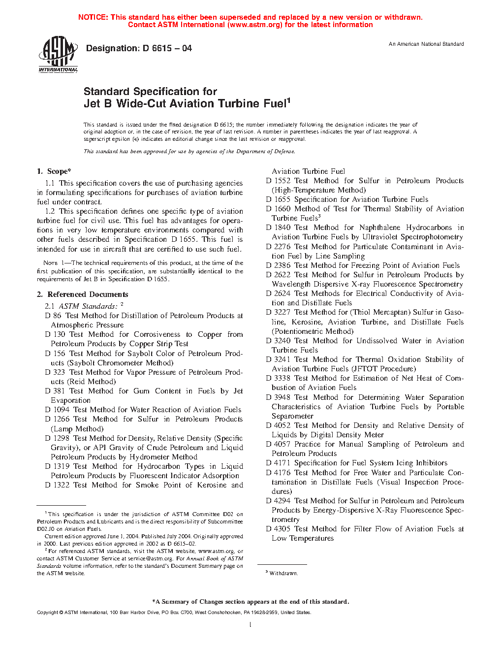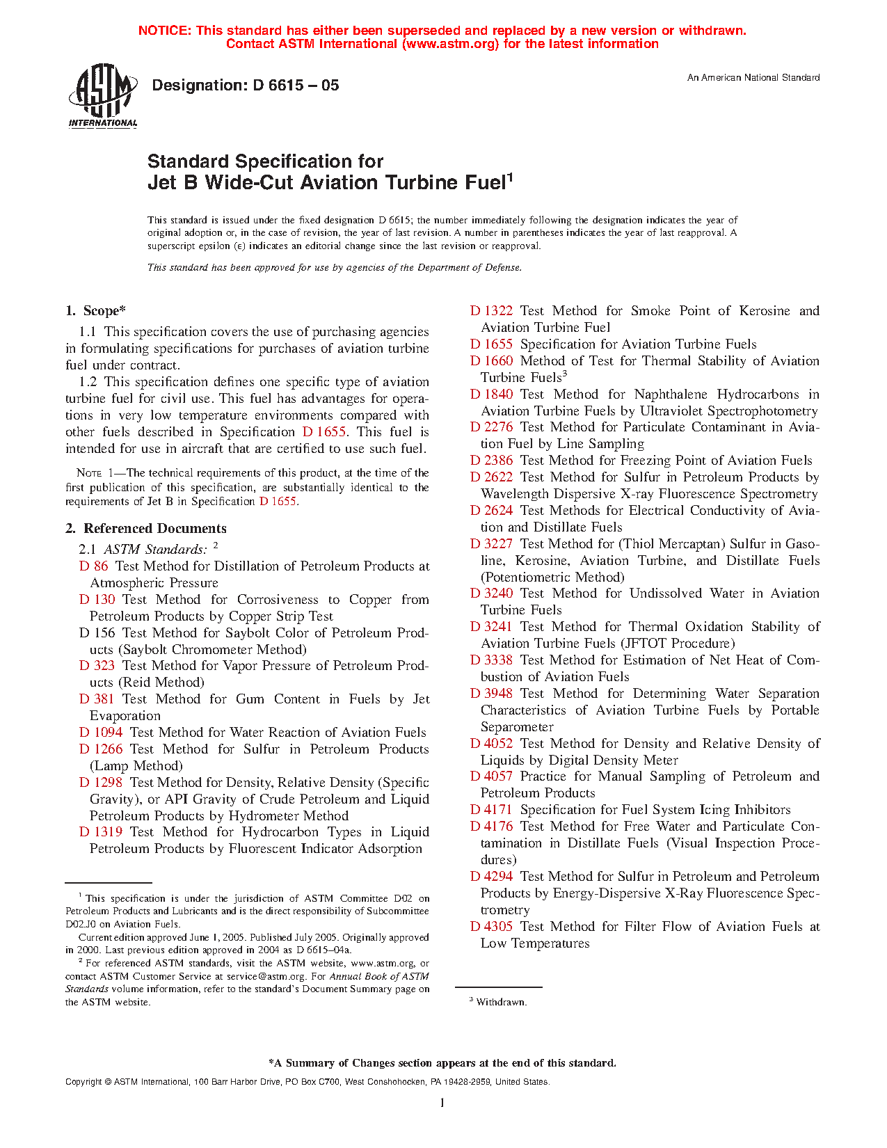 Note 1—The technical requirements of this product, at the time of the first publication of this specification, are substantially identical to the requirements of Jet B in Specification D1655.