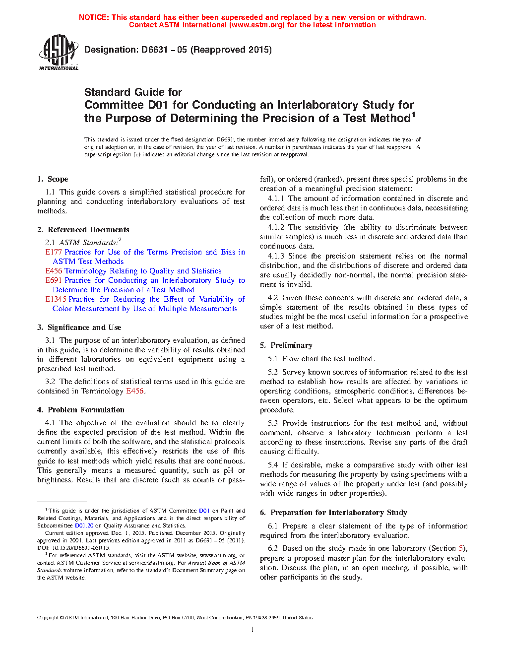 Standard Guide for Committee D01 for Conducting an Interlaboratory Study for the Purpose of Determining the Precision of a Test Method