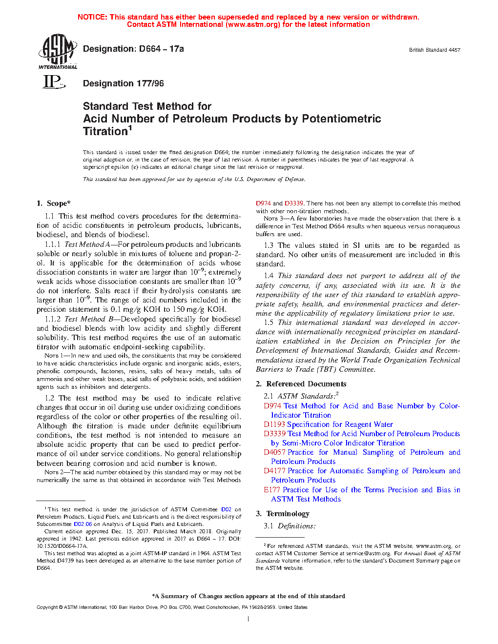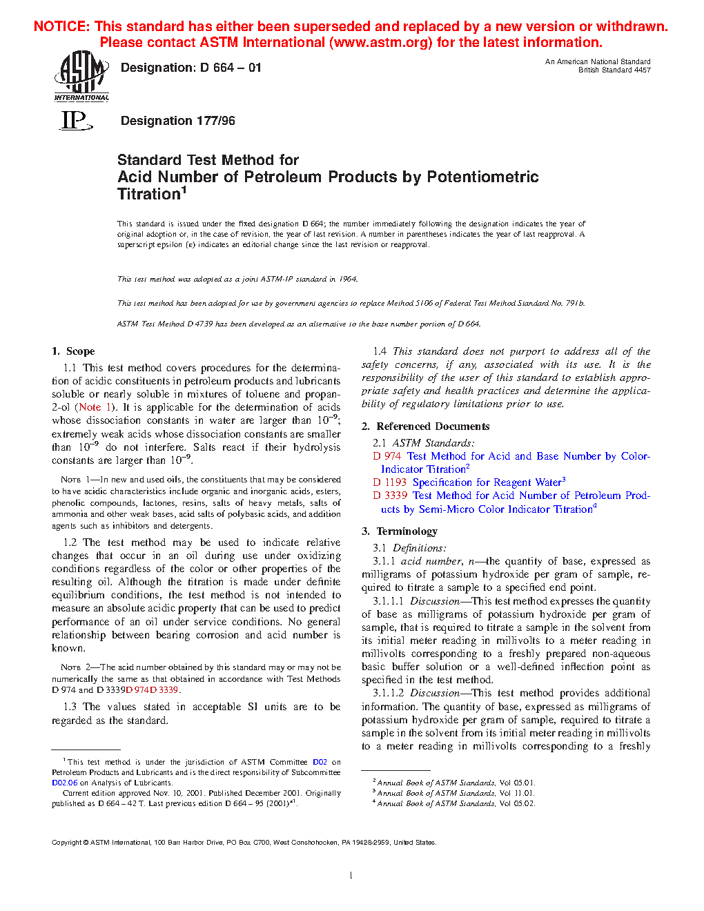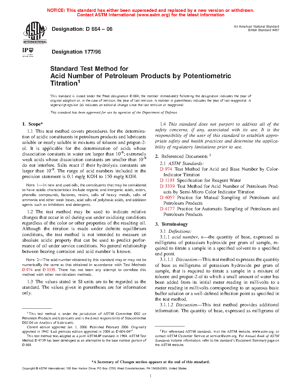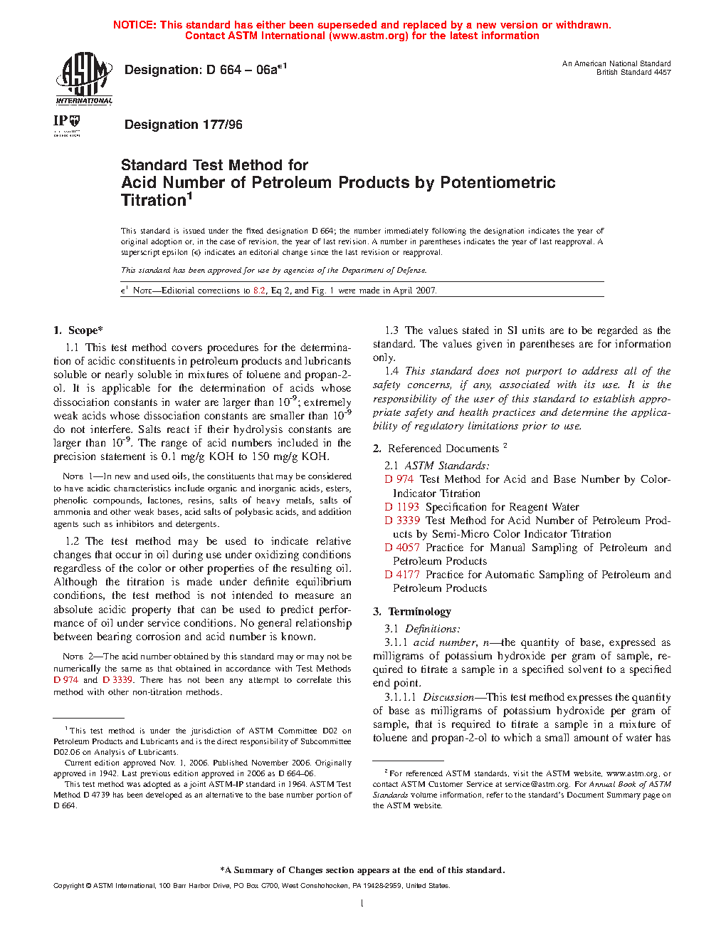 Note 2The acid number obtained by this standard may or may not be numerically the same as that obtained in accordance with Test Methods D 974 and D 3339. There has not been any attempt to correlate this method with other non-titration methods.