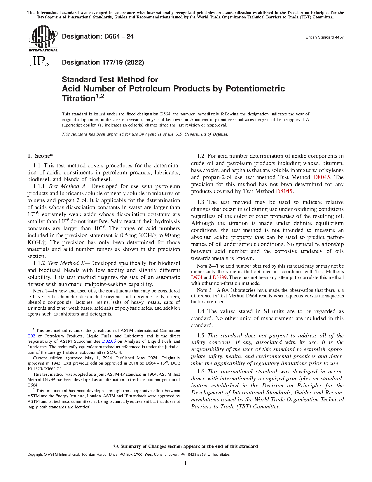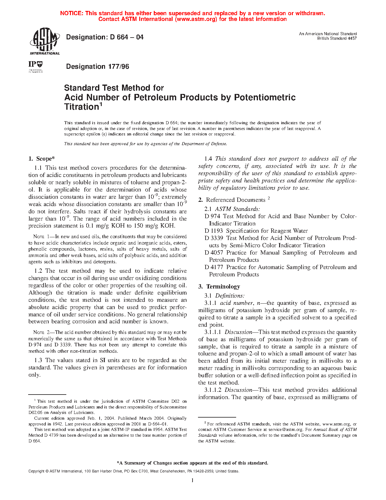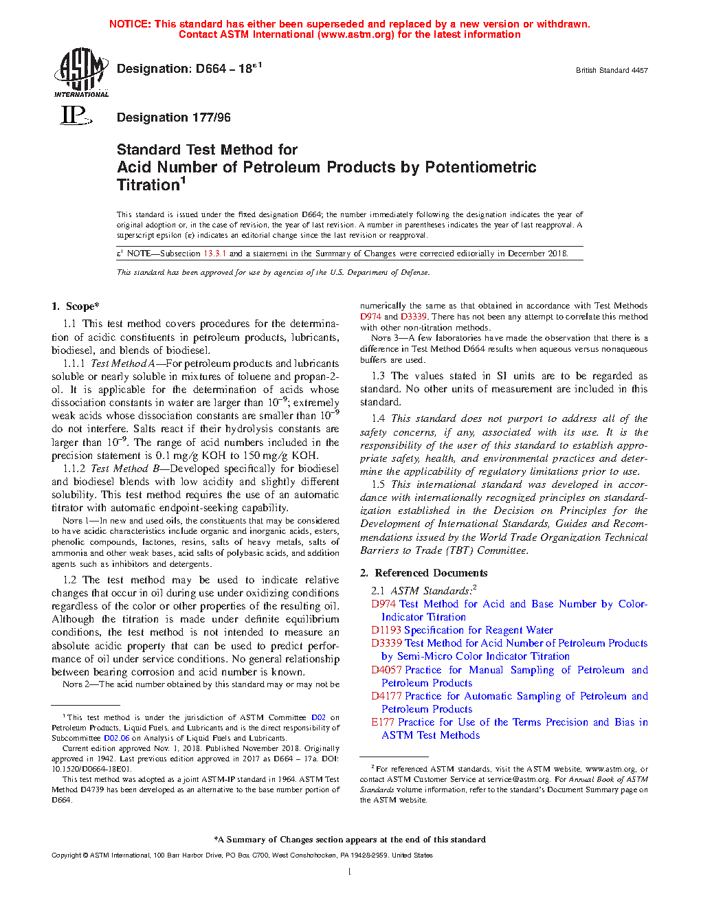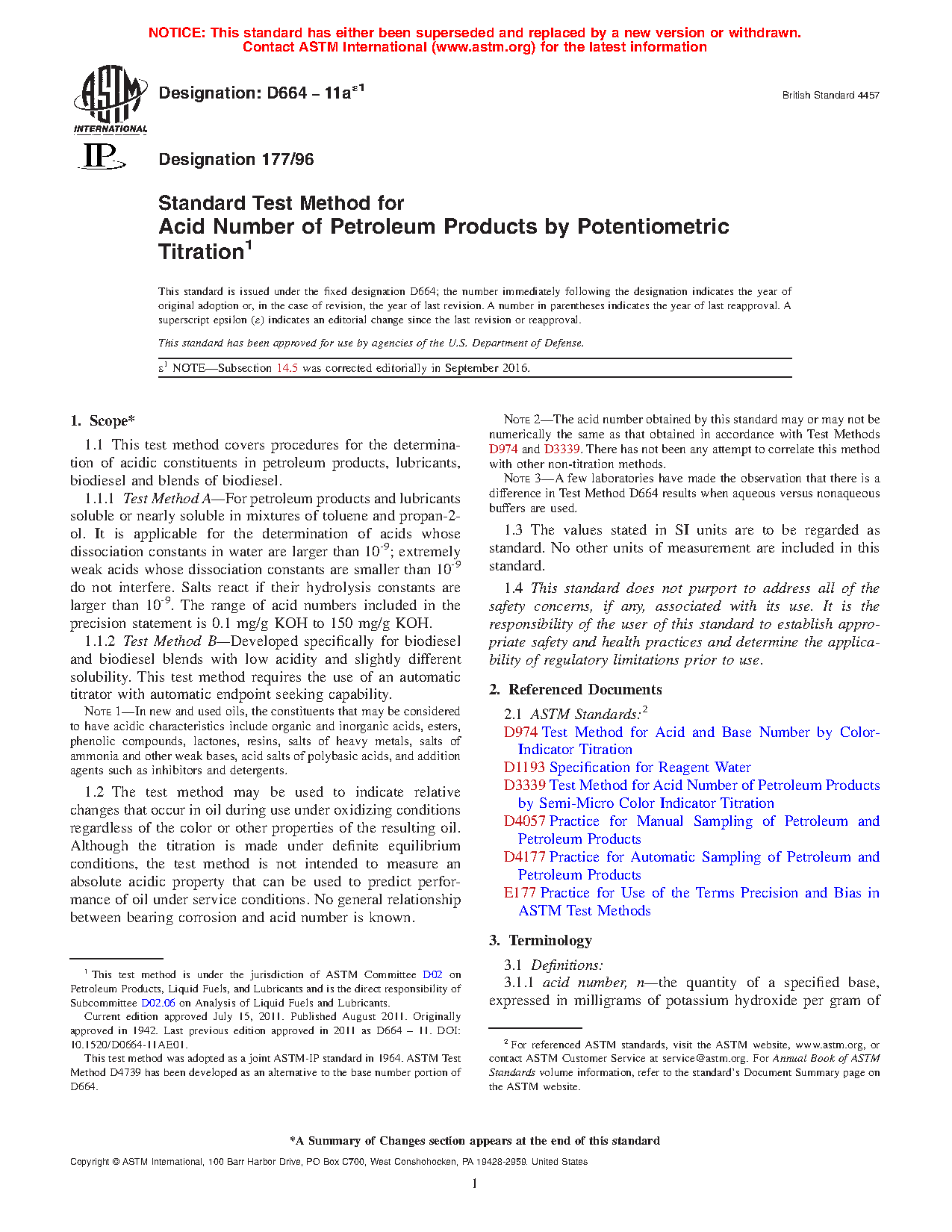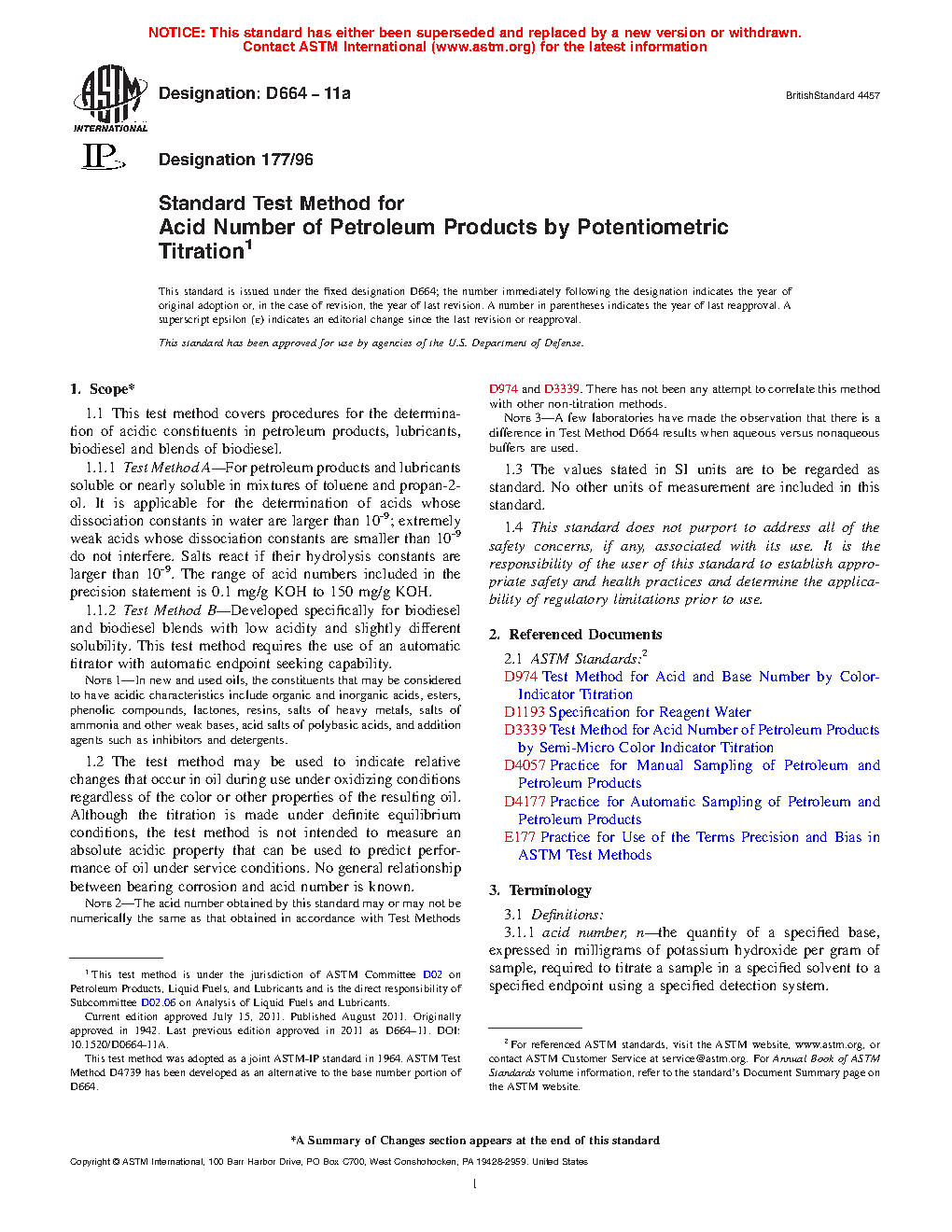 Note 2The acid number obtained by this standard may or may not be numerically the same as that obtained in accordance with Test Methods D 974 and D 3339. There has not been any attempt to correlate this method with other non-titration methods.