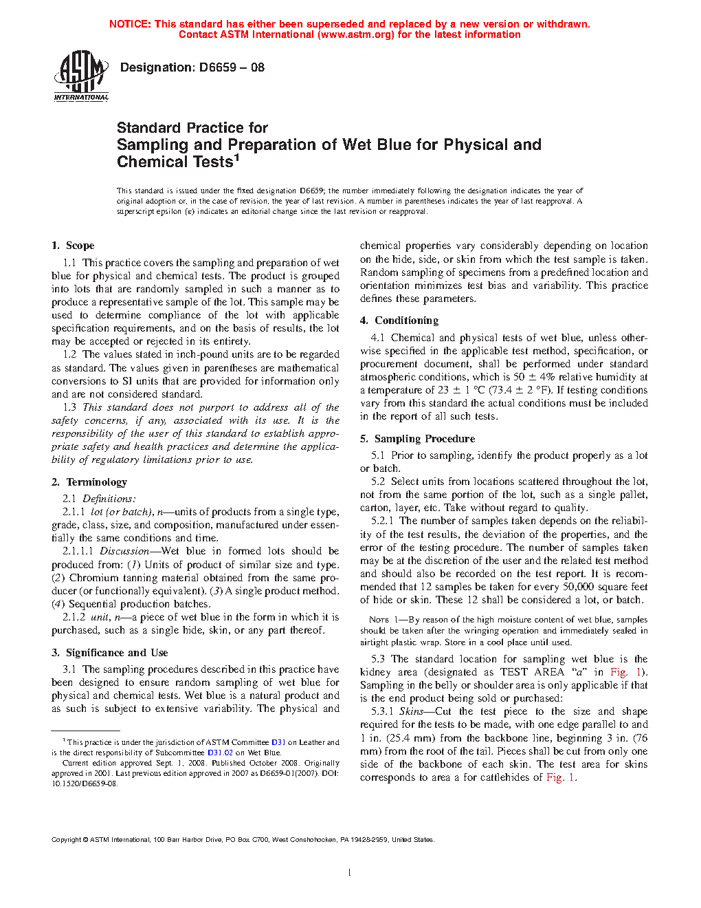 Standard Practice for Sampling and Preparation of Wet Blue for Physical and Chemical Tests