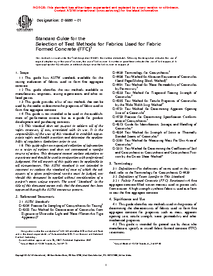 1.3 This guide provides a list of test methods that can be used by the reader to determine the properties of fabric used to form fine aggregate concrete.