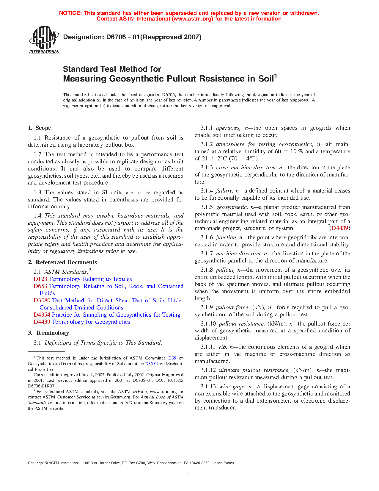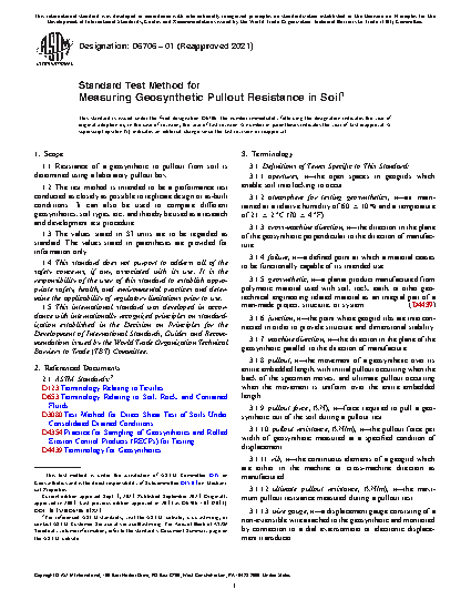 1.1 Resistance of a geosynthetic to pullout from soil is determined using a laboratory pullout box.