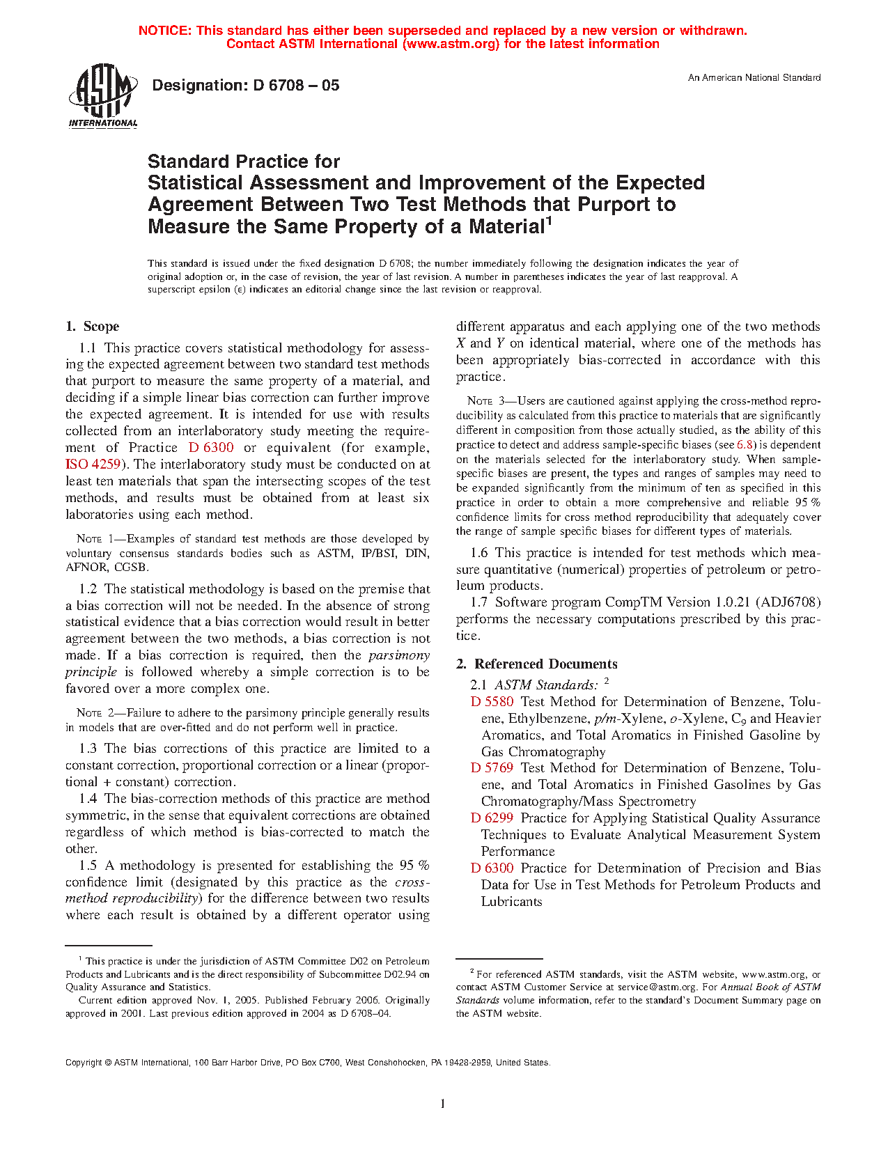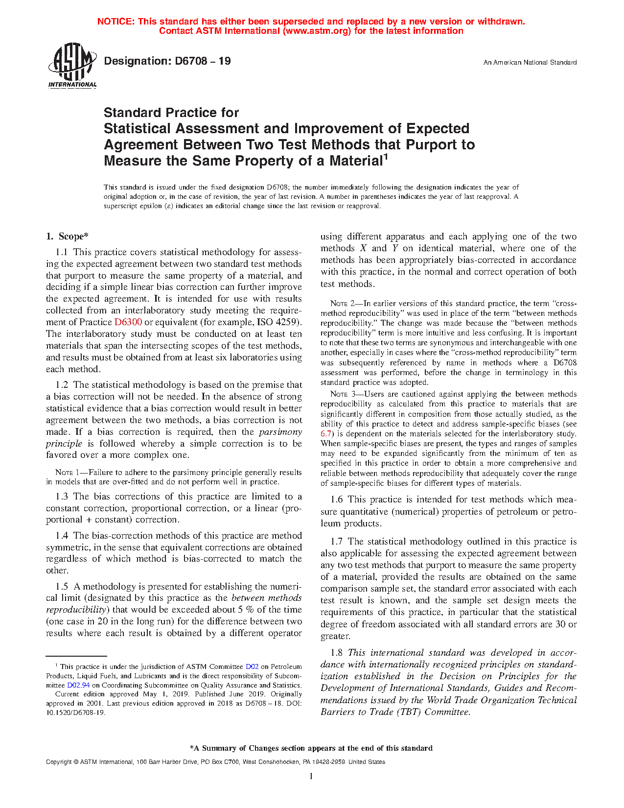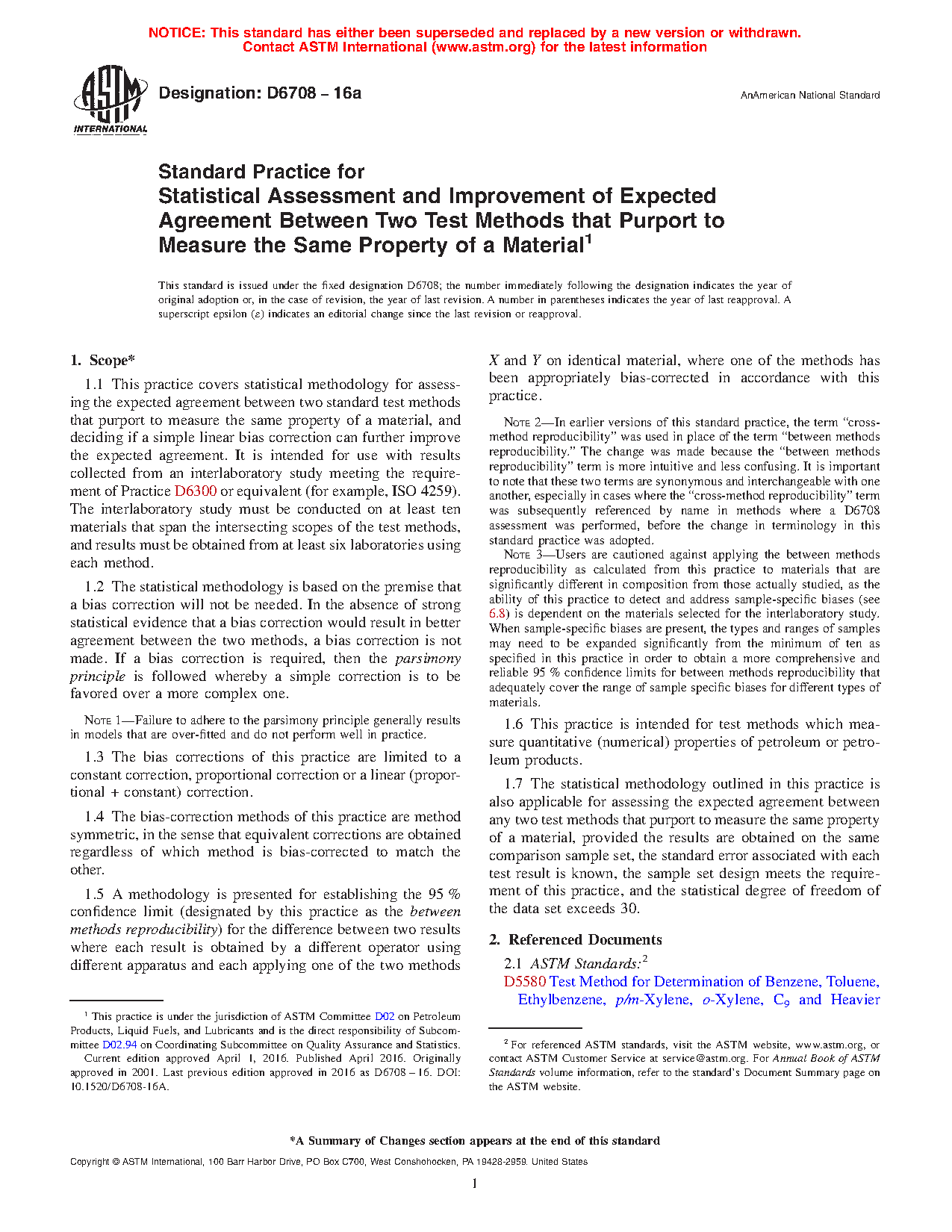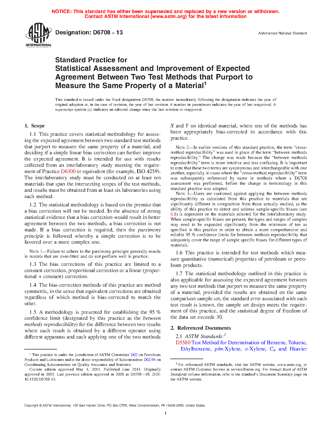 Note 2: In earlier versions of this standard practice, the term “cross-method reproducibility” was used in place of the term “between methods reproducibility.” The change was made because the “between methods reproducibility” term is more intuitive and less confusing. It is important to note that these two terms are synonymous and interchangeable with one another, especially in cases where the “cross-method reproducibility” term was subsequently referenced by name in methods where a D6708 assessment was performed, before the change in terminology in this standard practice was adopted.