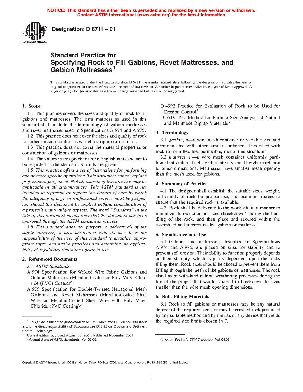 1.3 This practice does not cover the material properties or construction of gabions or mattresses.