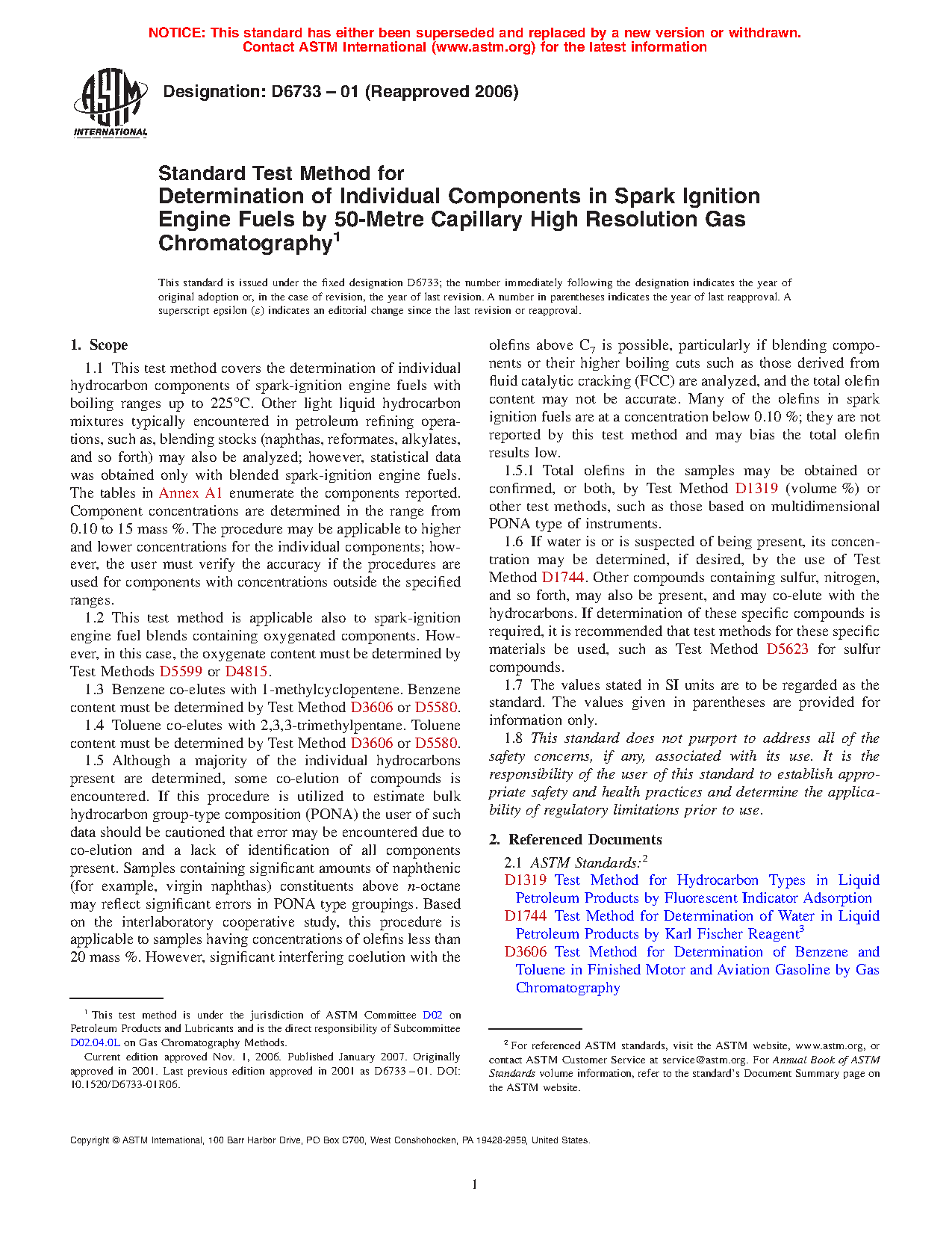 1.4 Toluene co-elutes with 2,3,3-trimethylpentane. Toluene content must be determined by Test Method D3606 or D5580.