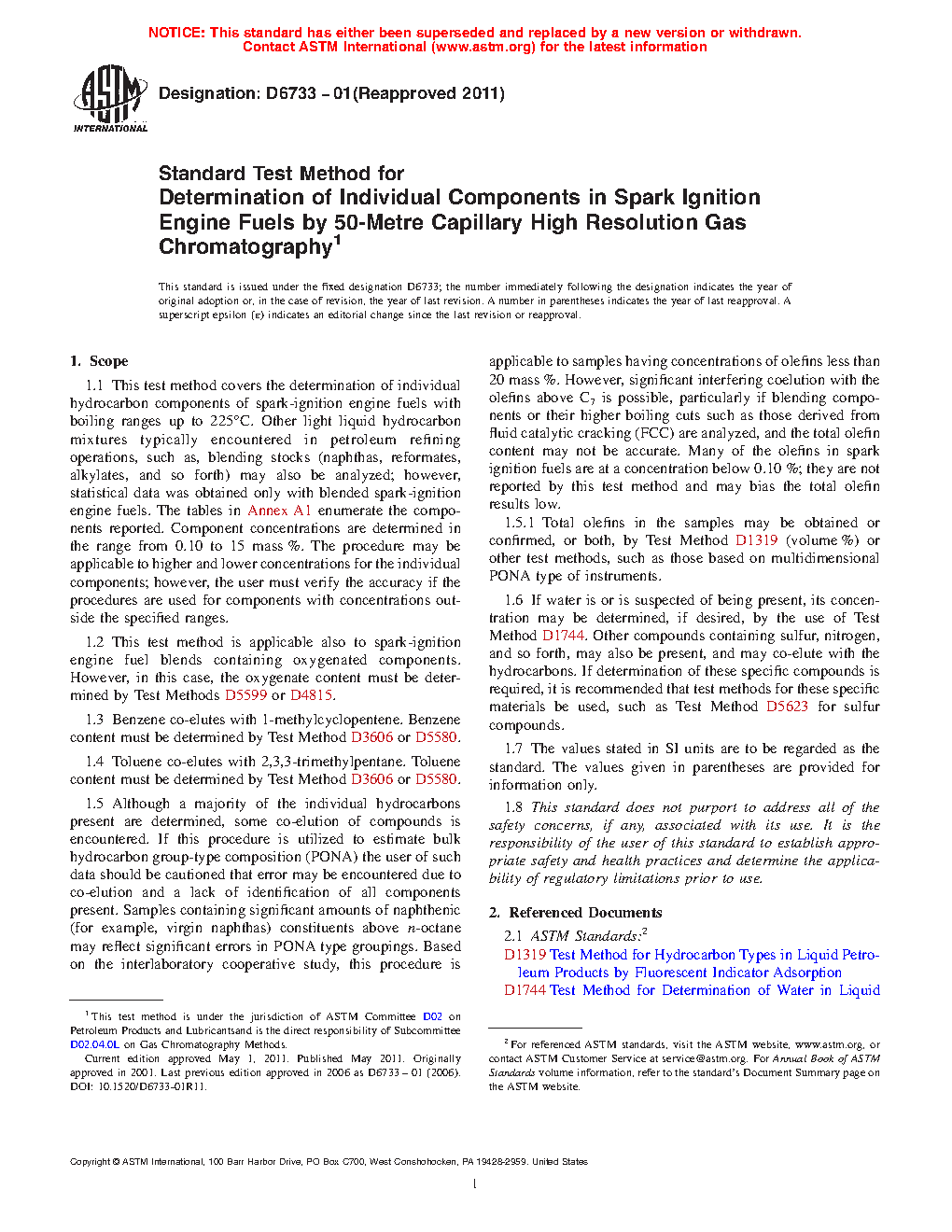 1.5.1 Total olefins in the samples may be obtained or confirmed, or both, by Test Method D1319 (volume %) or other test methods, such as those based on multidimensional PONA type of instruments.