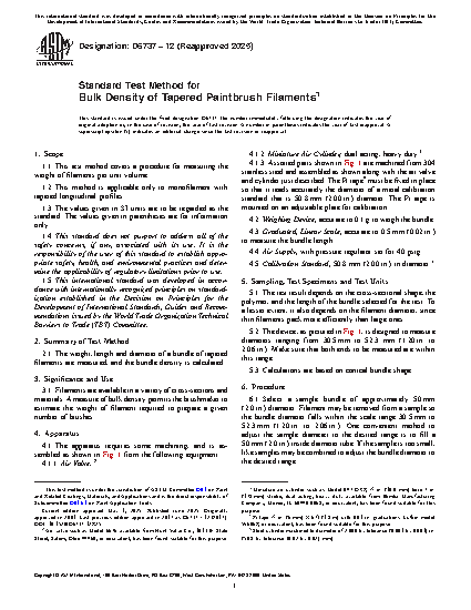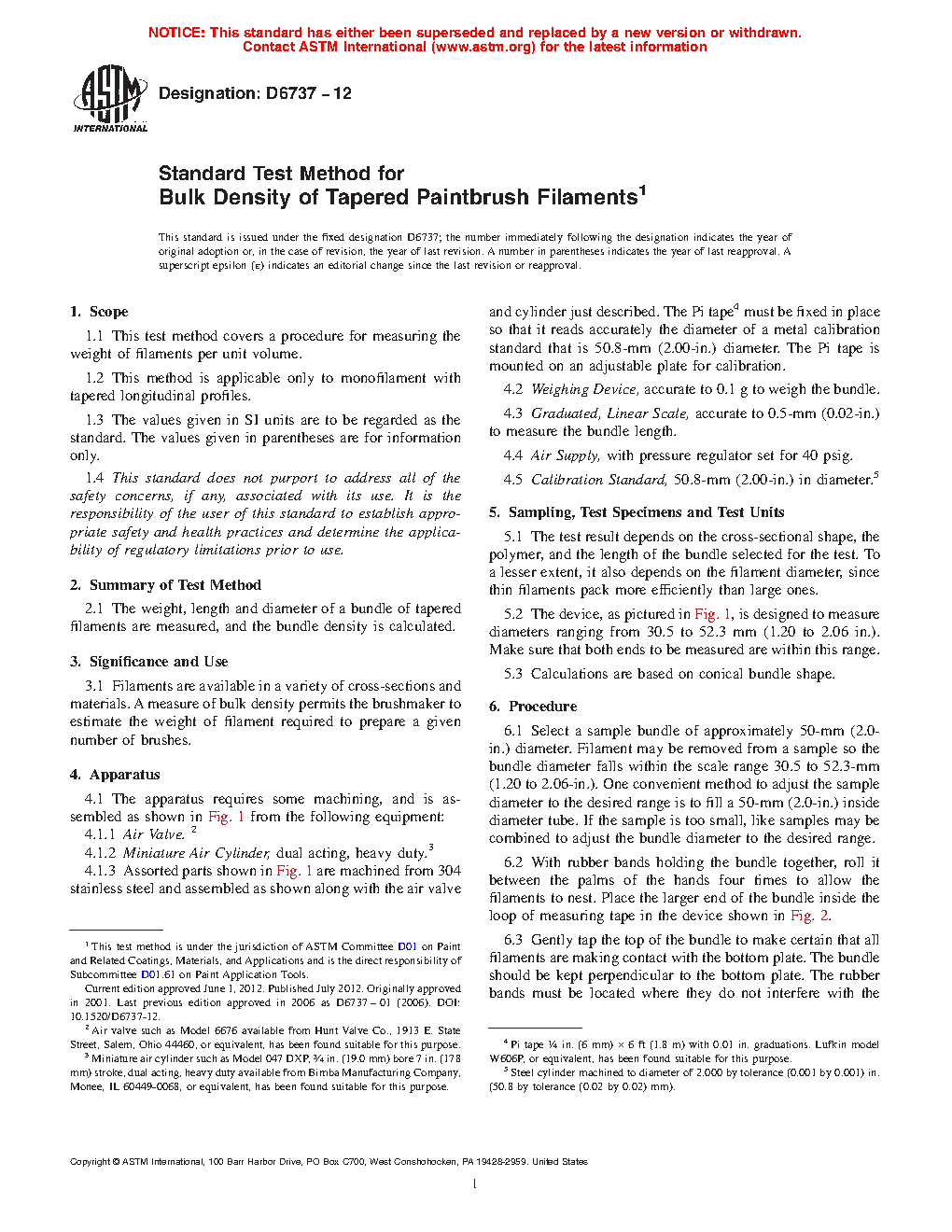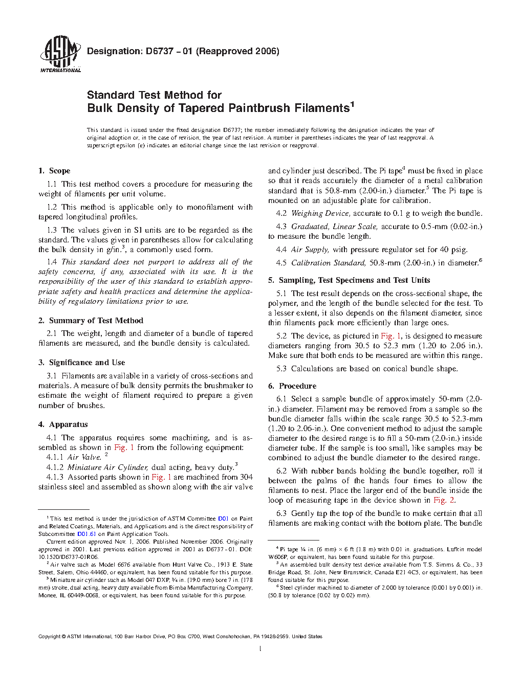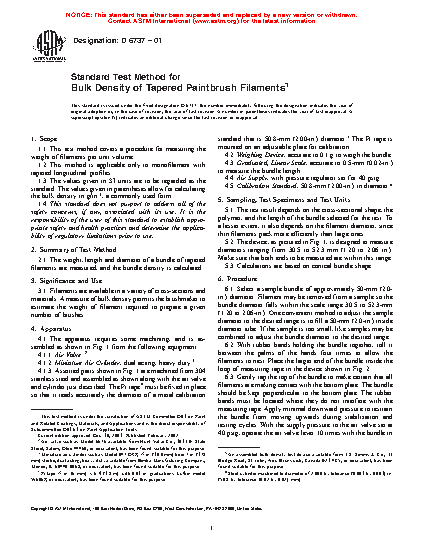Standard Test Method for Bulk Density of Tapered Paintbrush Filaments