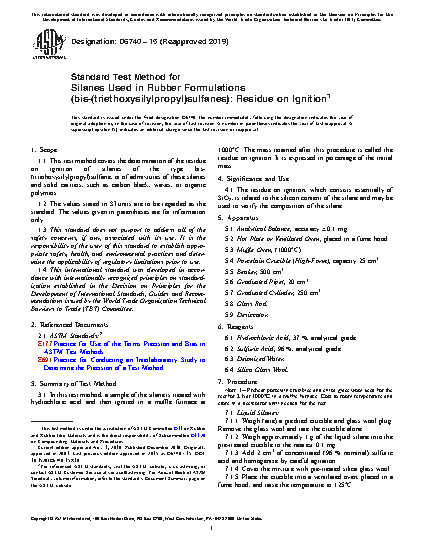 Standard Test Method for Silanes Used in Rubber Formulations (bis-(triethoxysilylpropyl)sulfanes): Residue on Ignition
