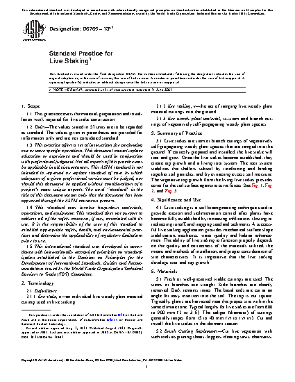 1.1 This practice covers the material, preparation and installation work required for live stake construction.