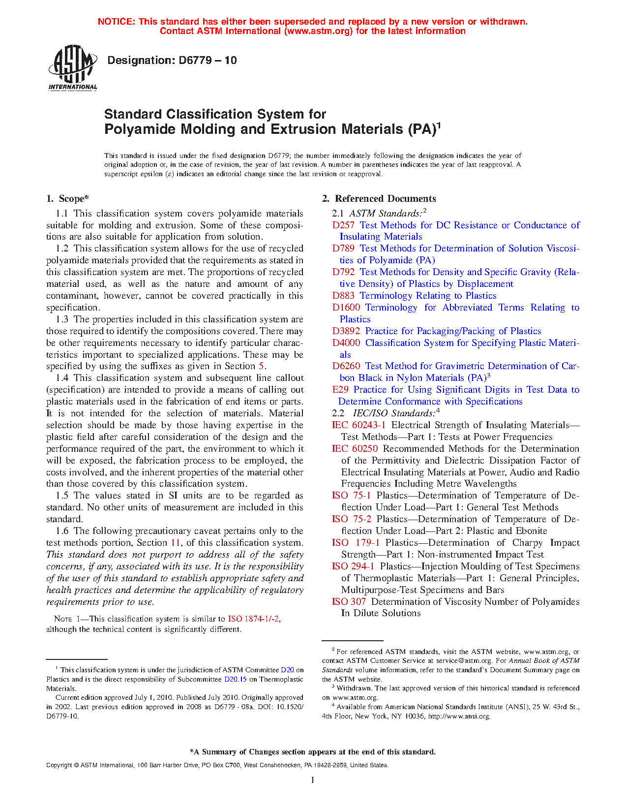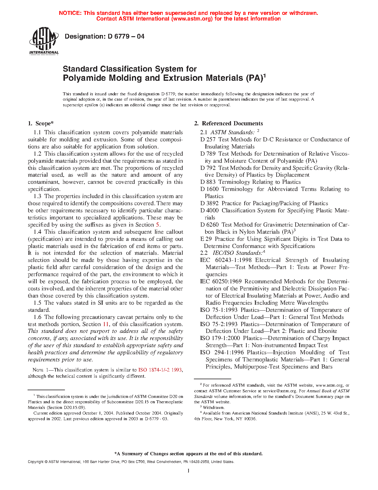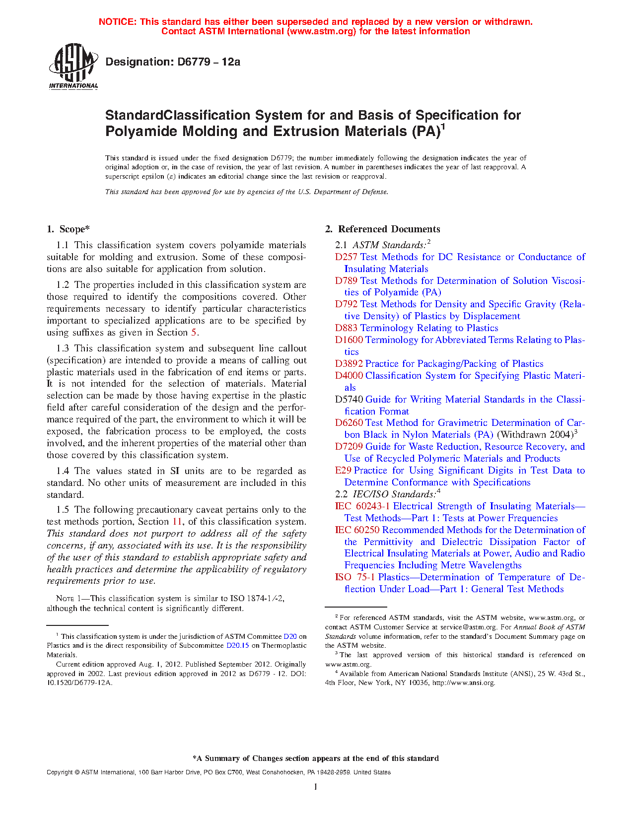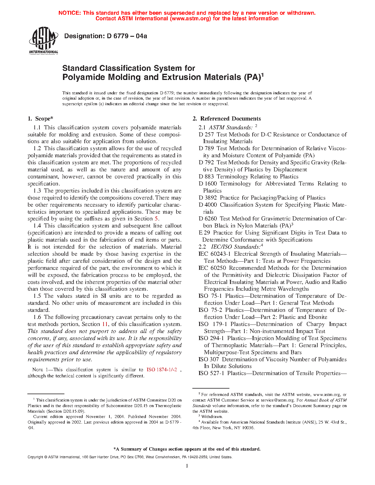 1.1 This classification system covers polyamide materials suitable for molding and extrusion. Some of these compositions are also suitable for application from solution.