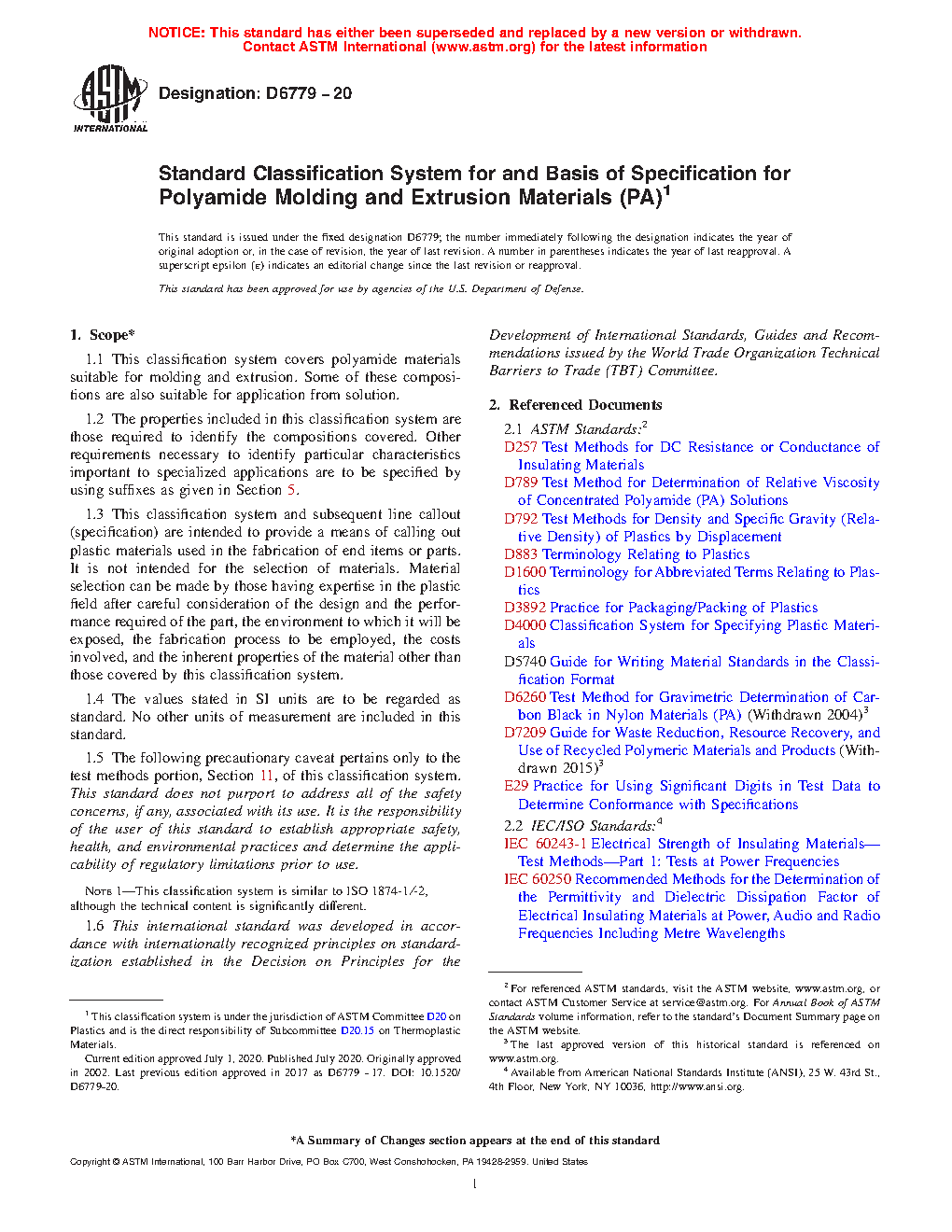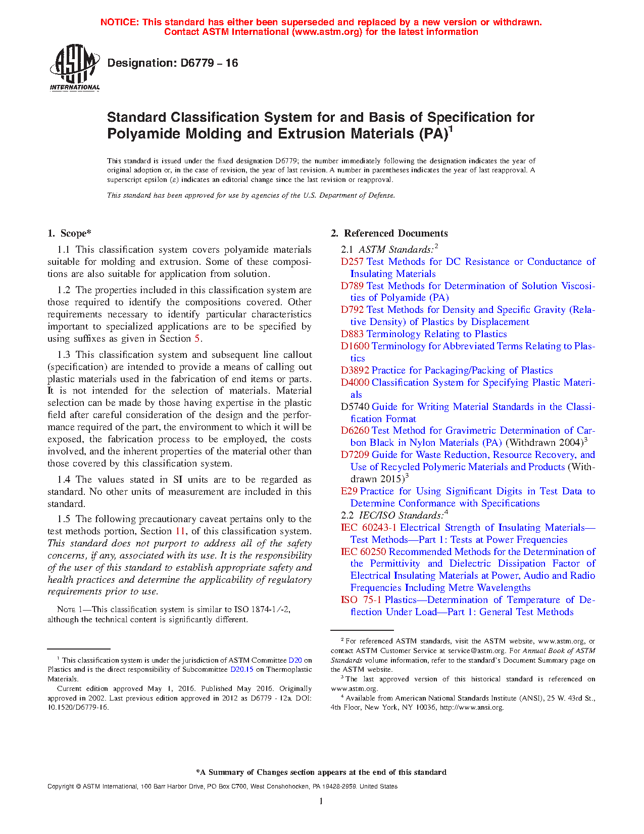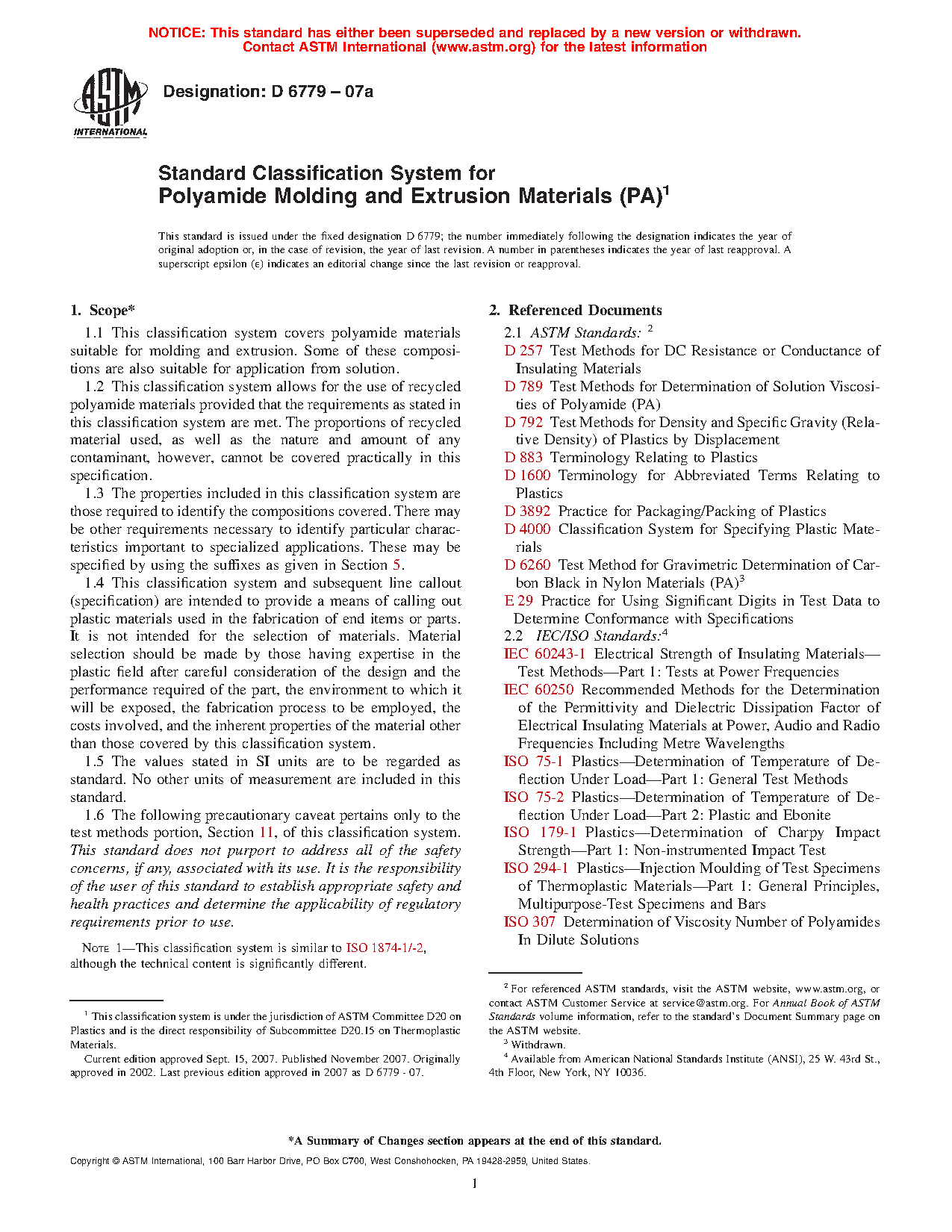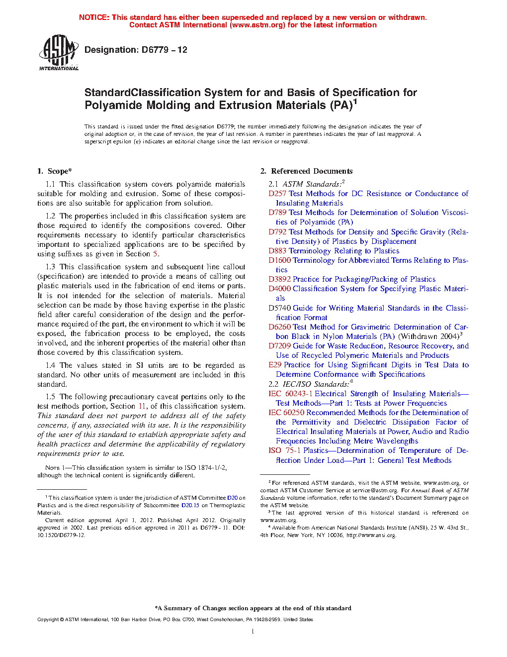 1.1 This classification system covers polyamide materials suitable for molding and extrusion. Some of these compositions are also suitable for application from solution.