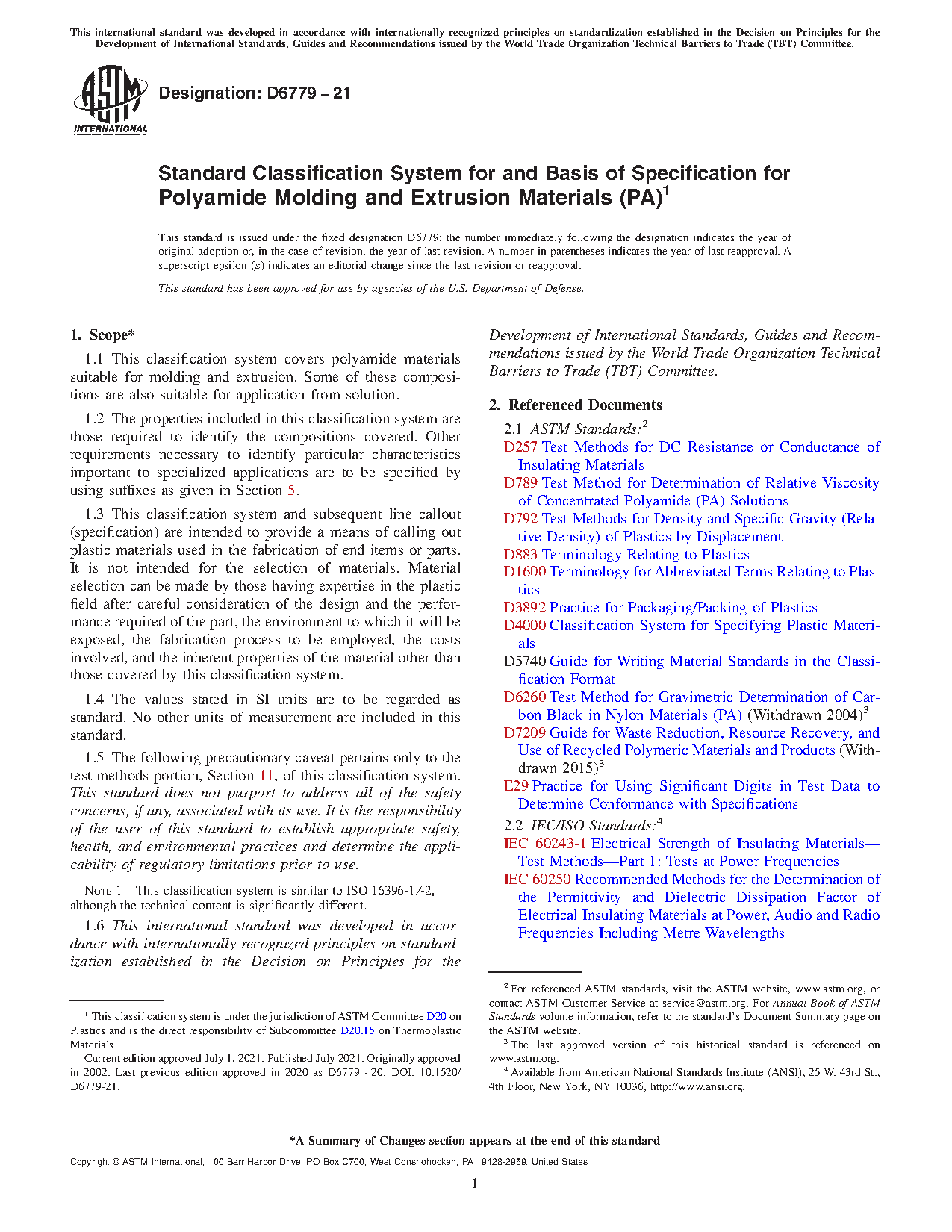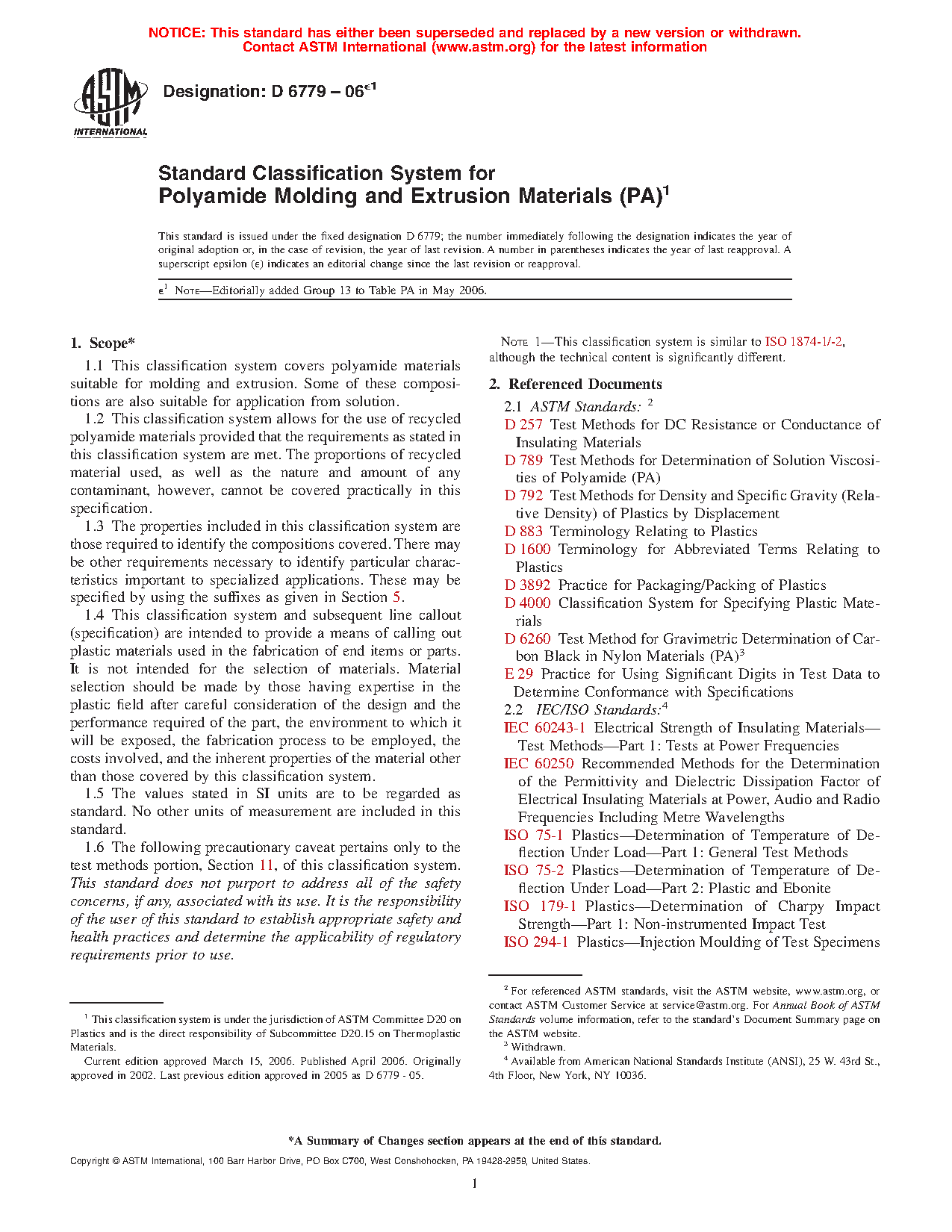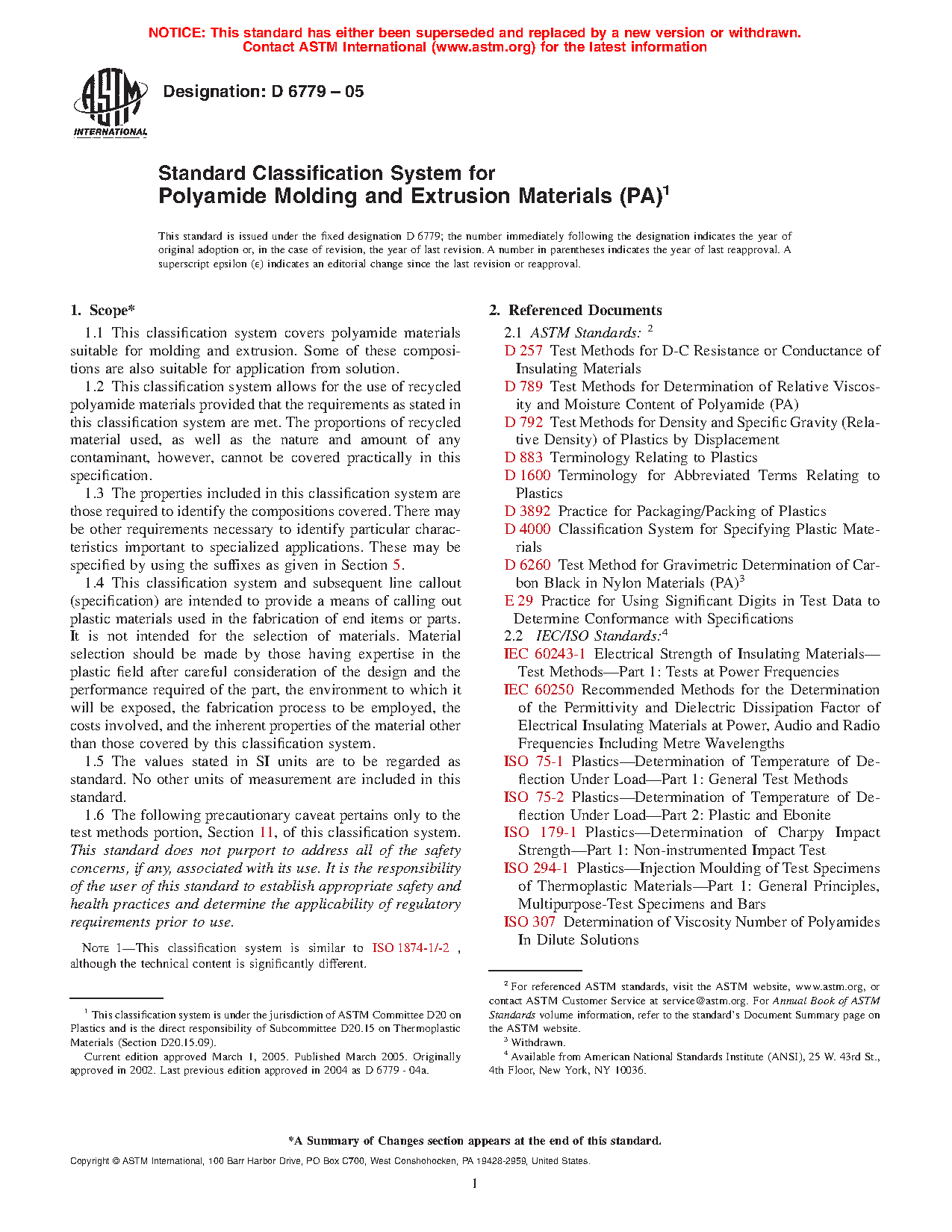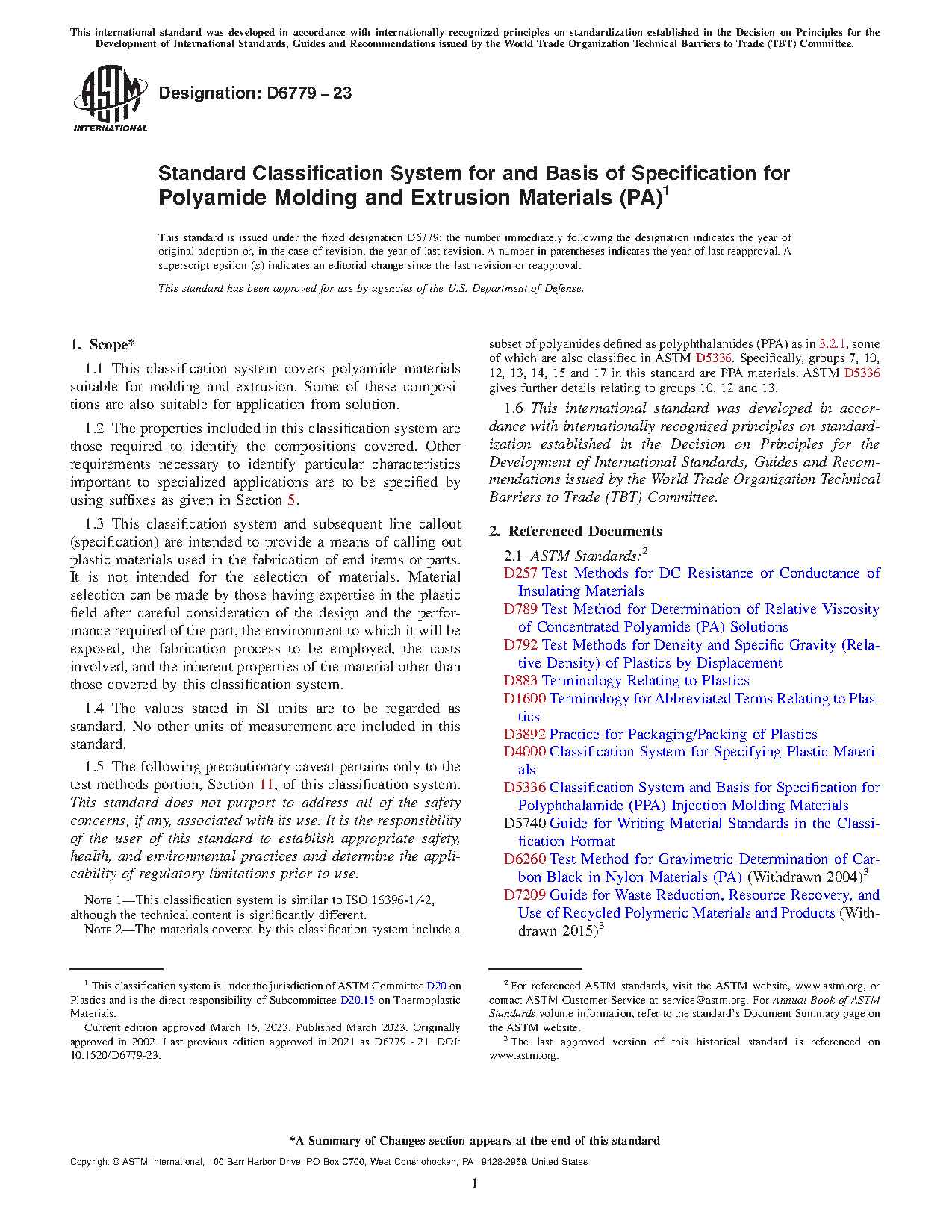1.1 This classification system covers polyamide materials suitable for molding and extrusion. Some of these compositions are also suitable for application from solution.