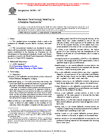 1.1 This standard covers terminology which is used in the evaluation of inflatable restraint fabrics, cushions, and modules.