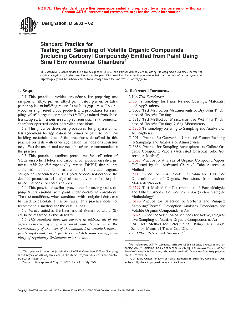 5.3 There is a need for standardized procedures for measuring the emissions of VOCs from paint and coating samples that can be reproduced by different laboratories and that can used for the assessment of the acceptability of VOC emissions from paints and coatings that are intended for use indoors in occupied spaces. This practice describes standardized procedures that can be incorporated into test methods used for the purpose of estimating the impacts of cured paints and coatings on indoor air quality. Different procedures are required for the estimation of VOC exposures to workers applying such products.